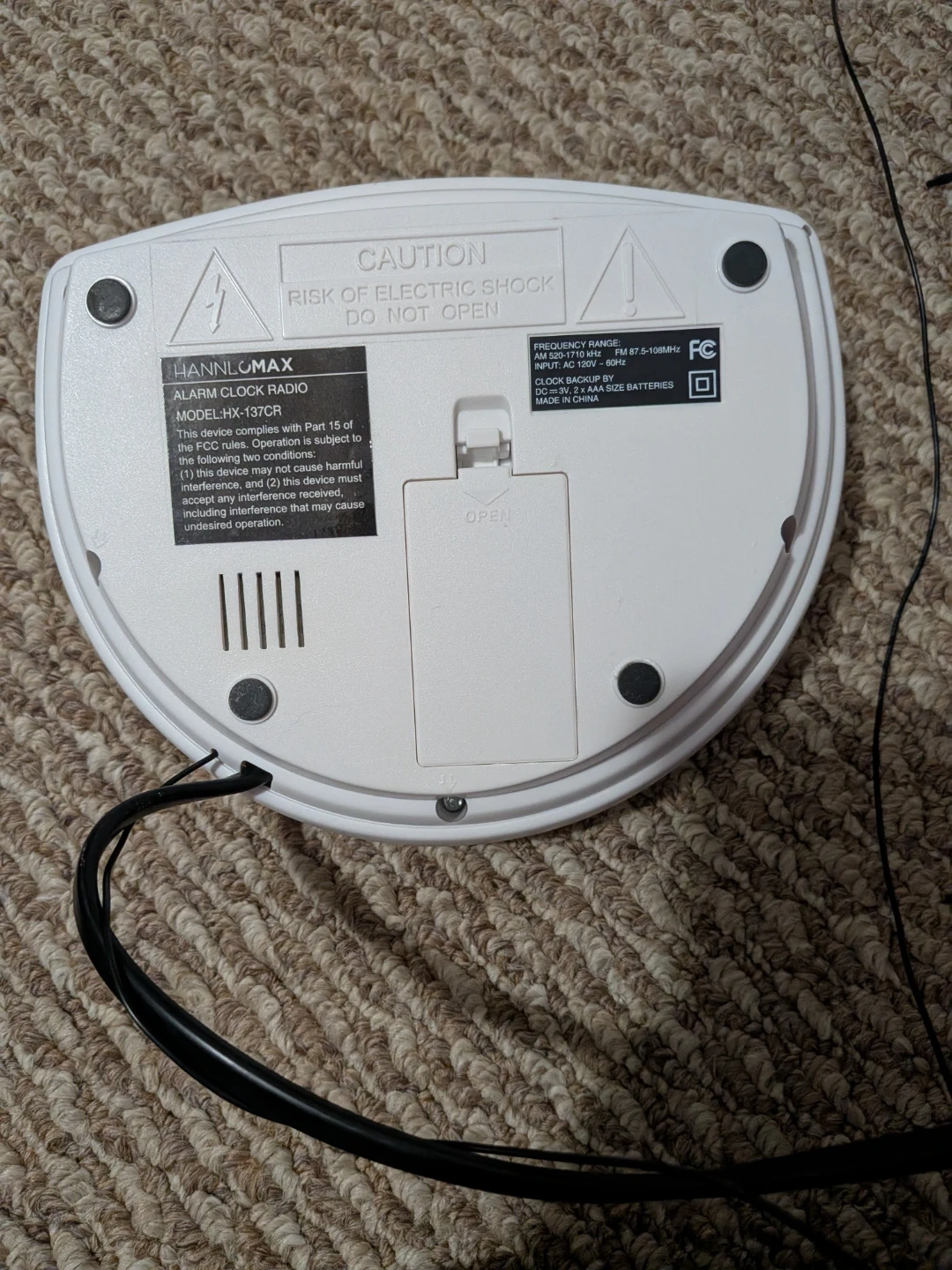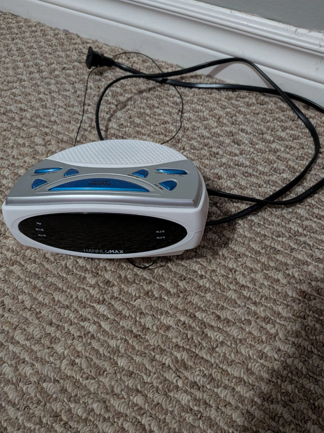 HannlOMax alarm clock radio, model HX-137CR. It's in good working condition and ready to help you wake up on time! Features include: