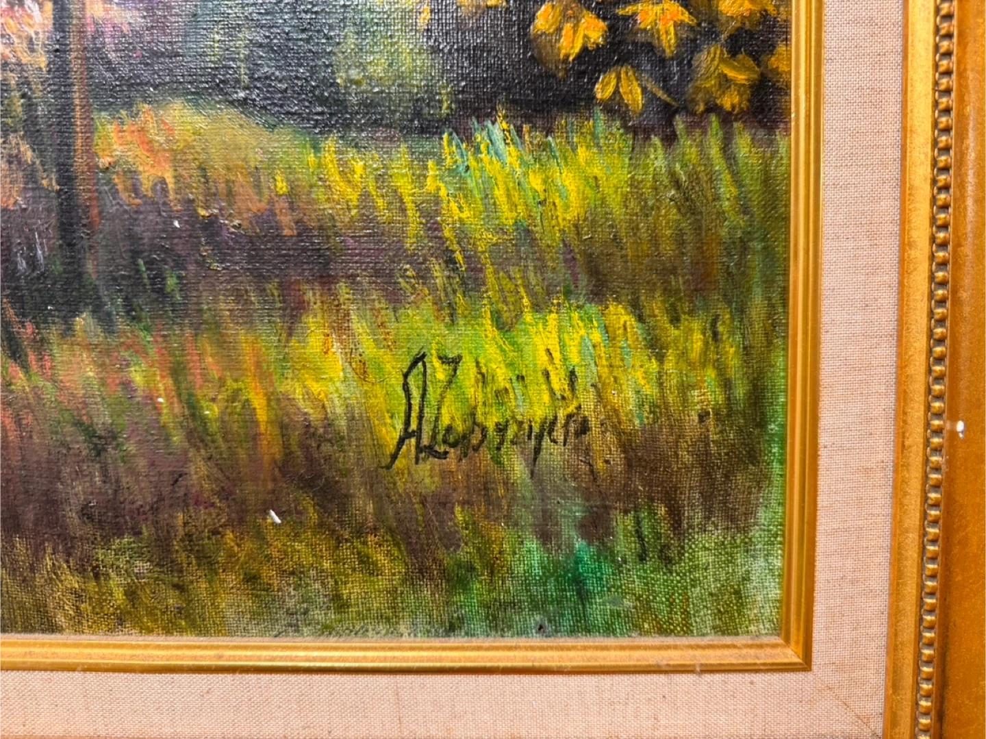 Vintage Hand-Painted Oil Landscape in Ornate Gold Frame