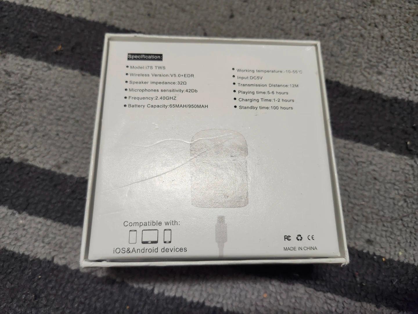 Selling a new pair of i7S TWS wireless earbuds! They come in the original box, ready for a new user. The box includes the charging case and the earbuds themselves. These earbuds are compatible with both iOS and Android devices. They have a working temperature of -10 to 55 degrees Celsius and a standby time of 100 hours