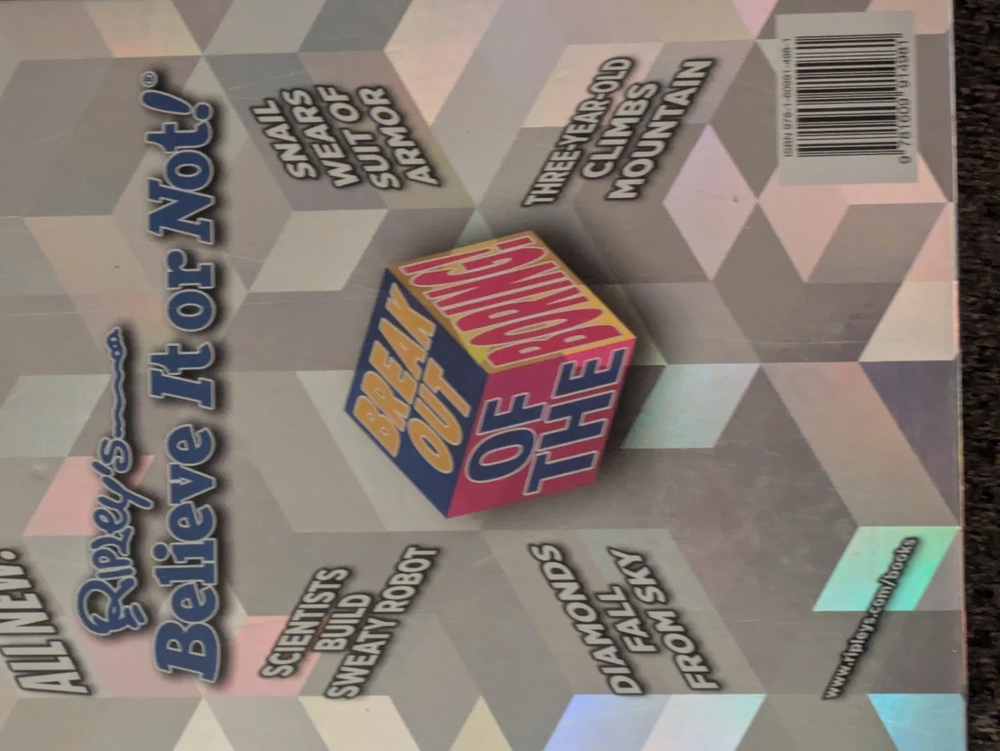 Selling a copy of Ripley's Believe It or Not! Out of the Box book. It's all new and includes 48 extra pages inside. A fun read for all ages!