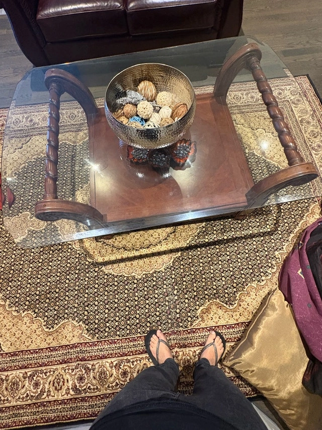 I'm offering a stunning solid wood coffee table with a glass top, blending classic design with durability. This used piece has been a centrepiece in my living room, offering ample space and a touch of elegance. Its dimensions and the quality of materials make it a unique find, perfect for adding character to any living space. If the ad is up, it's still available!