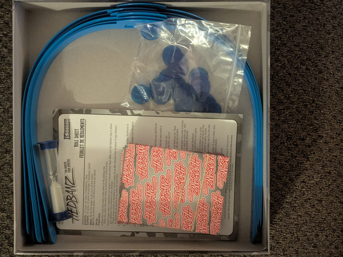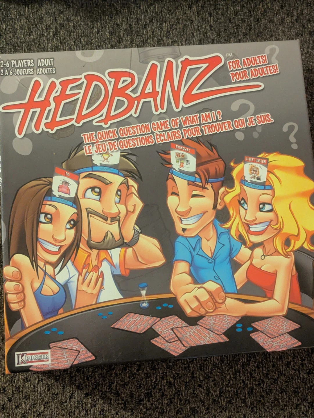 Selling the Hedbanz Adulting game! It's the quick question game of what am I, for adults! Includes all the pieces in the box: headbands, cards, timer, and chips