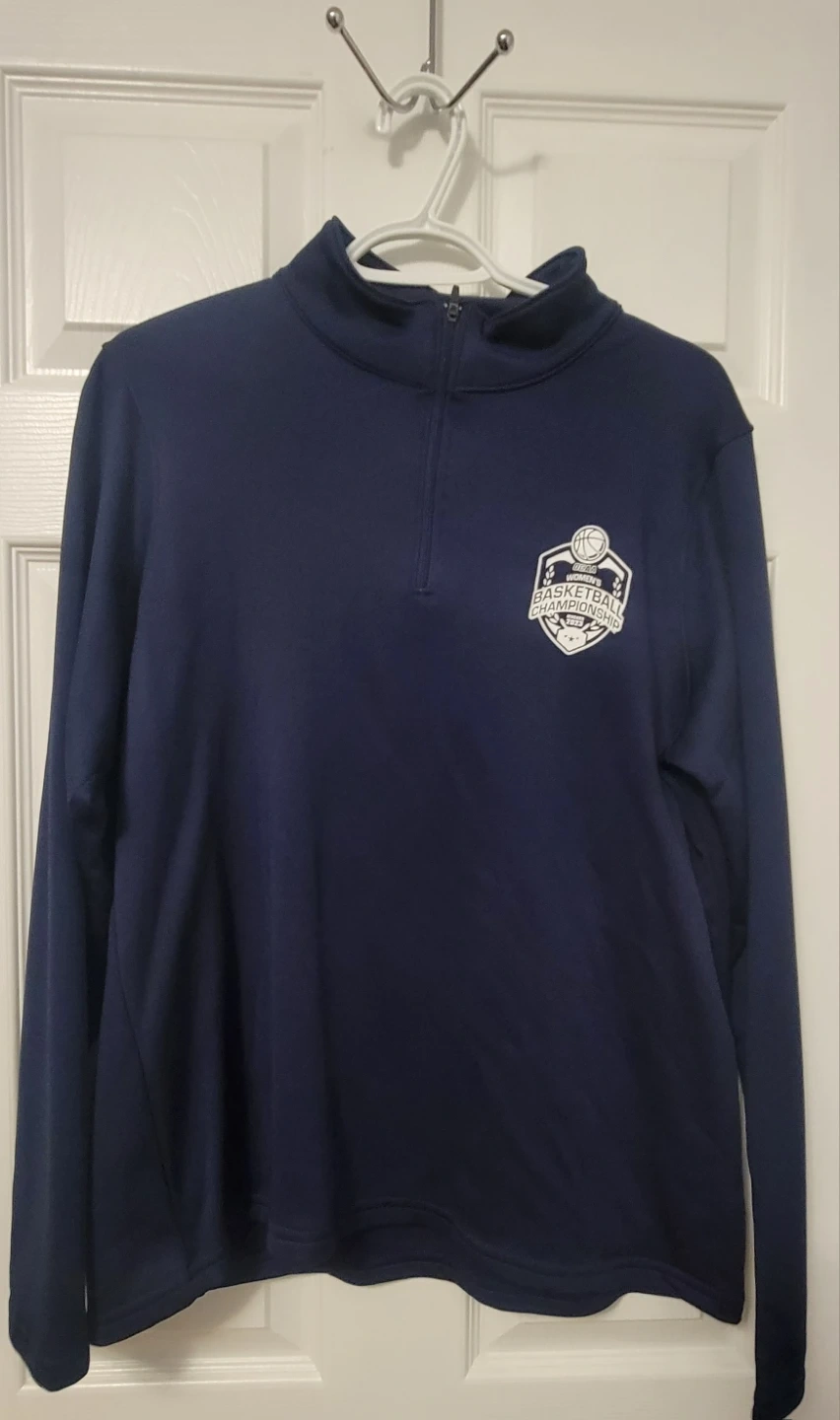 ladies' Augusta Sportswear pullover in size L. It's a nice navy colour and features a basketball championship logo. Perfect for staying comfy and showing your love for the game!