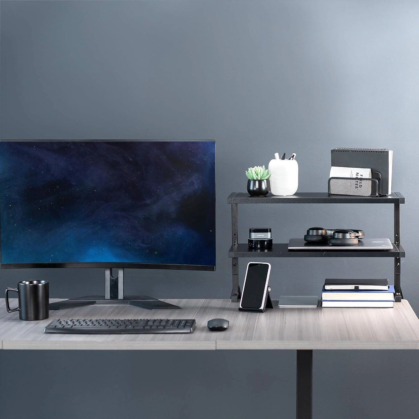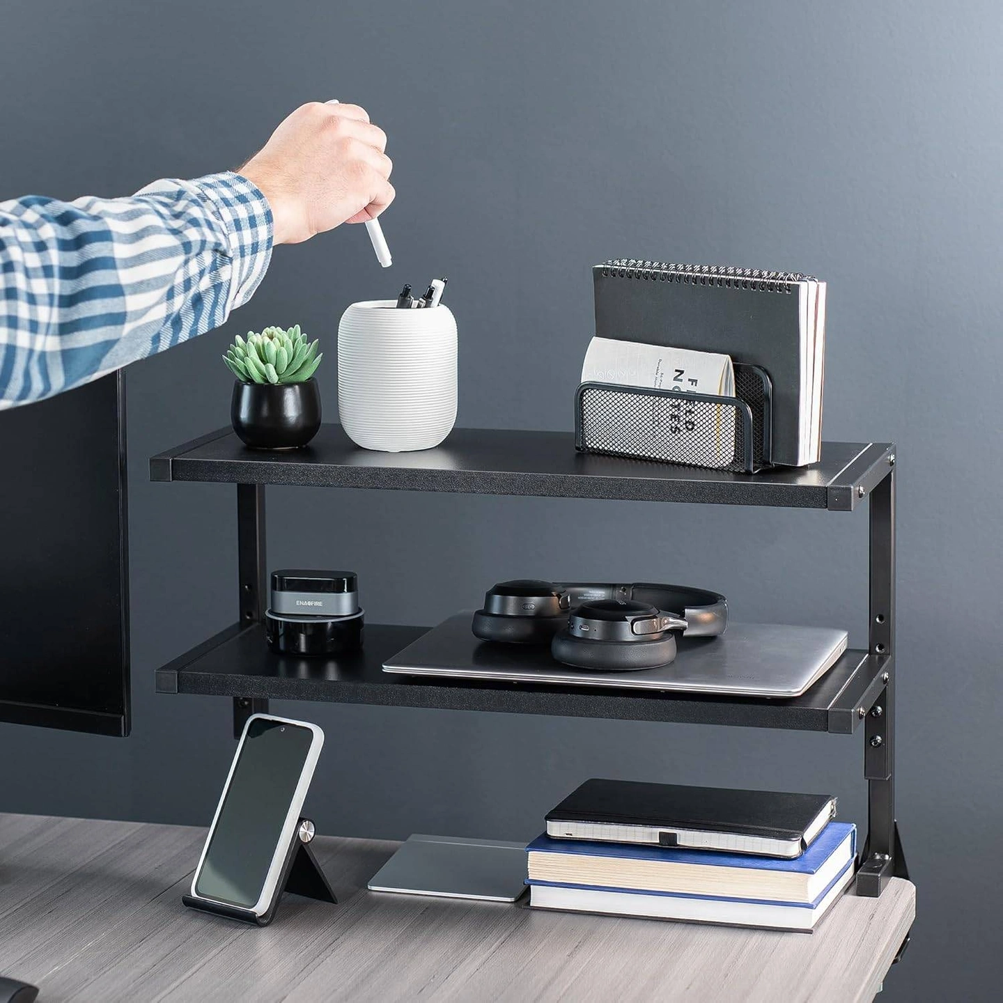 2-Tier Shelving Unit for Table Accessories, Gaming Devices, and More, Storage Tray, Desktop Organizer, Black, STAND-SHELF24C