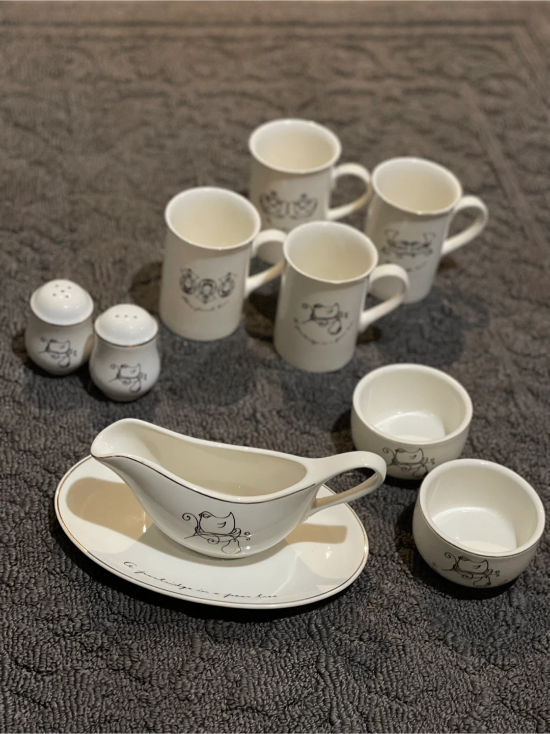 Collections includes mugs 1-4, salt and pepper shakers, gravy boat and 2 ramekins. Mint condition!