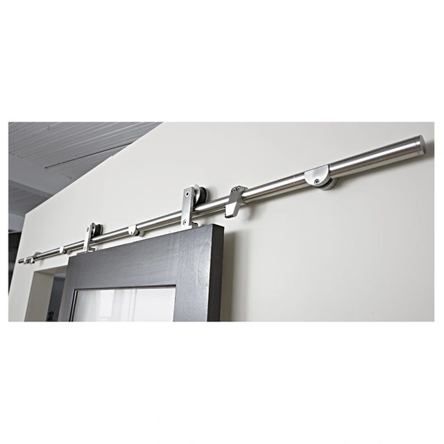 For door up to 37 in. possibility of adding a second system for larger openings Supports a maximum weight of 150 lbs Details smooth ball bearing mechanism for barn door Material brushed stainless steel tubular rail and hardware Maximum weight 150lbs