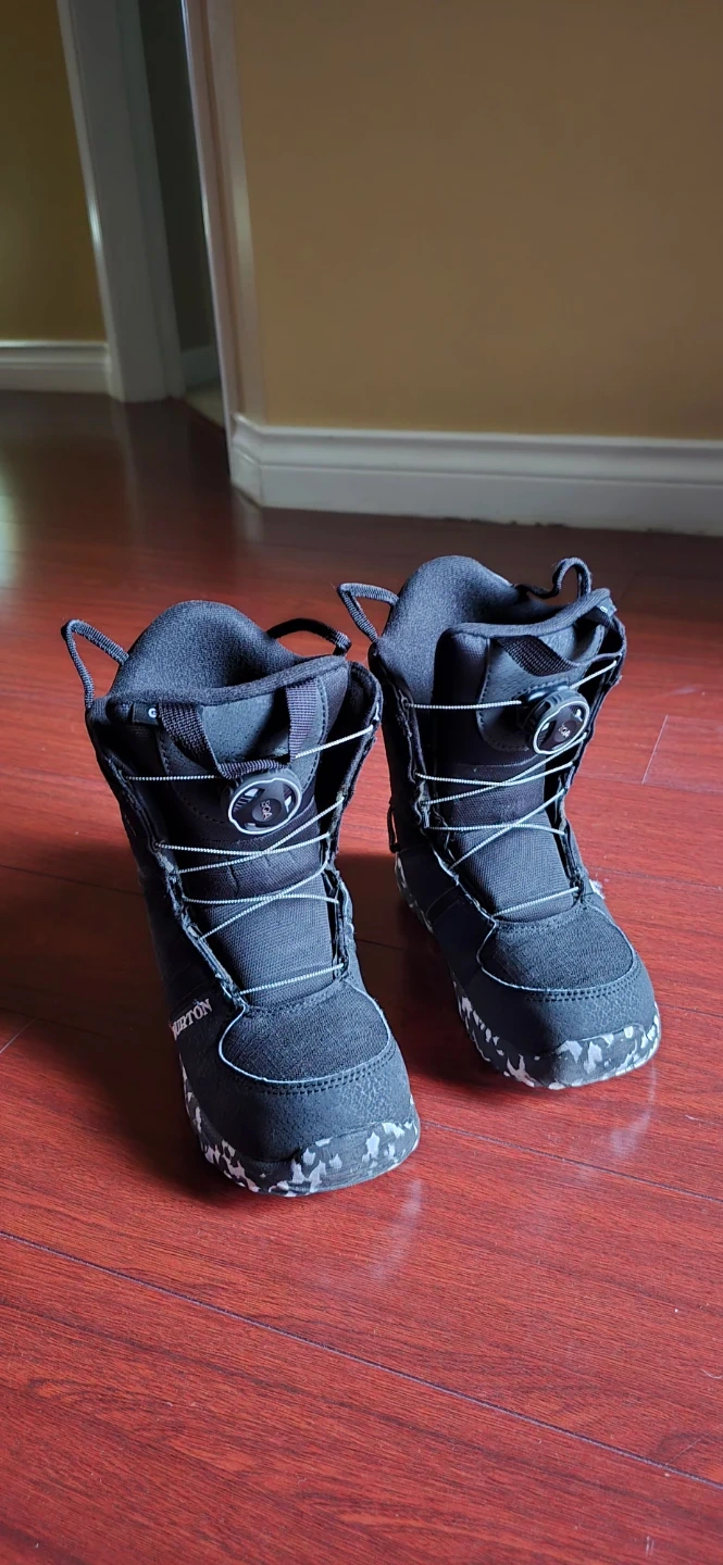 Selling a LIKE NEW pair of Burton Room-To-Grow Grom Boa kids snowboard boots. They are black with a BOA lacing system.