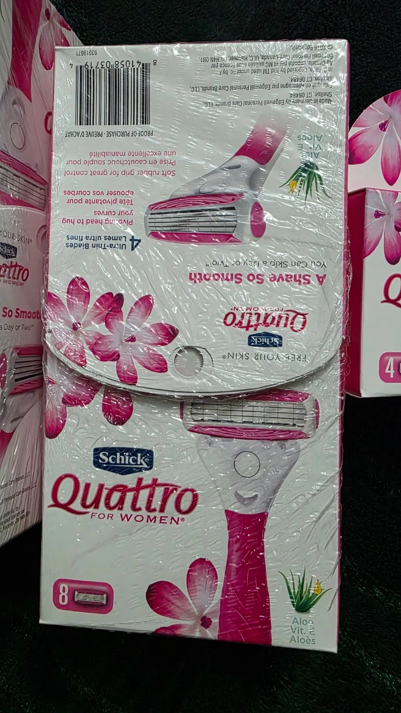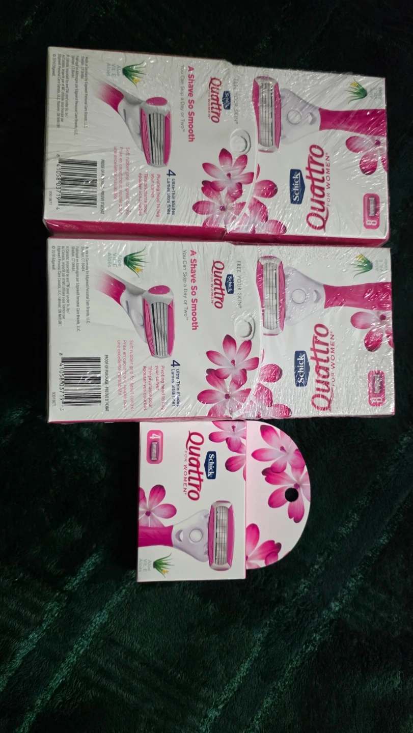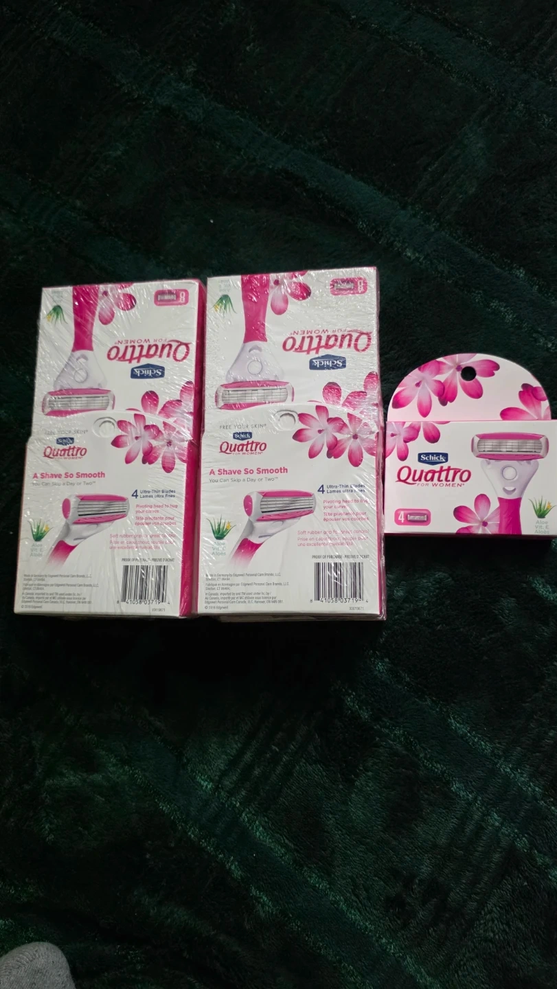 Selling new Schick Quattro for Women razors! These razors have 4 ultra-thin blades for a smooth shave. The soft rubber grip provides great control. Perfect for sensitive skin and leaves you feeling refreshed