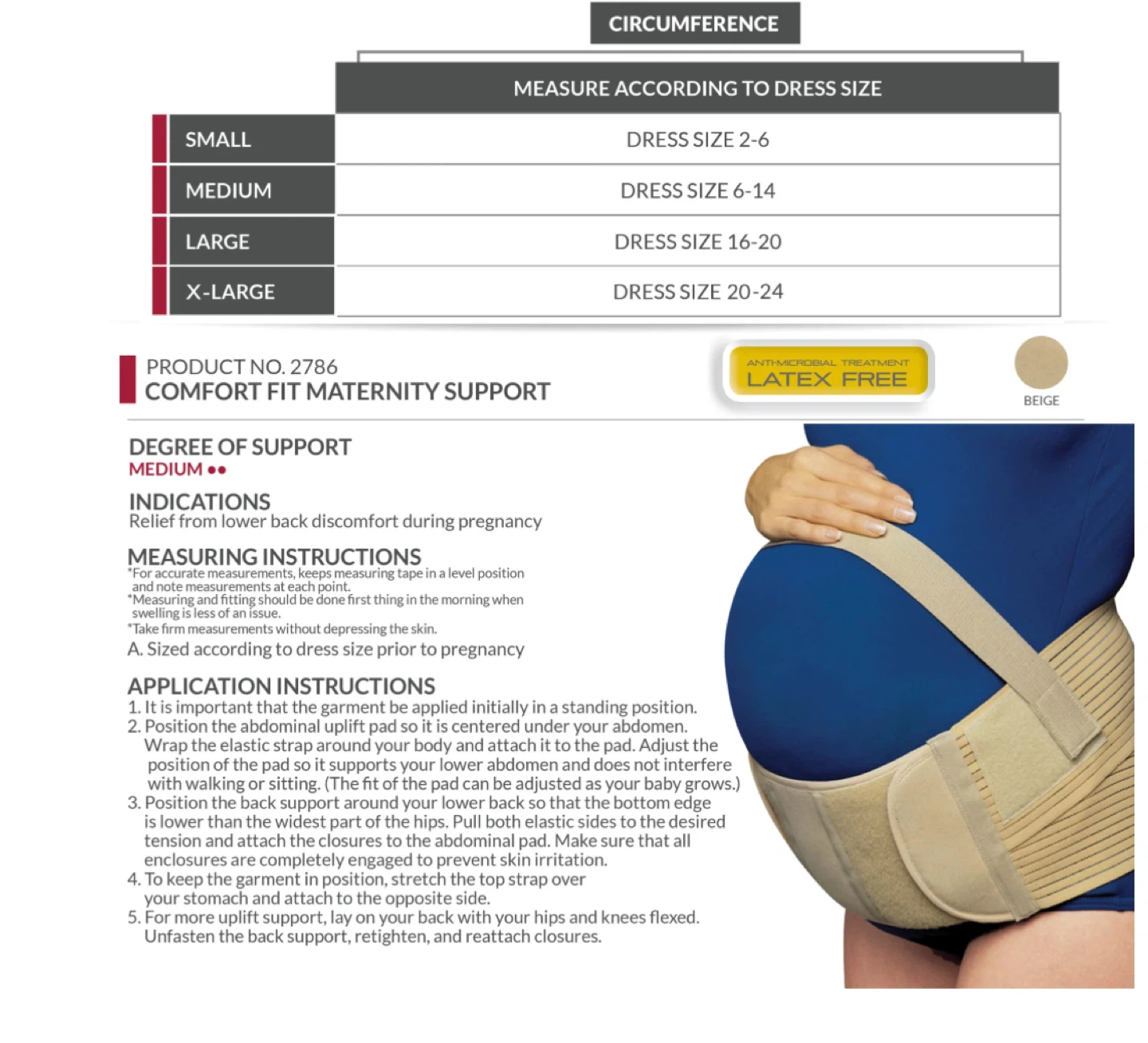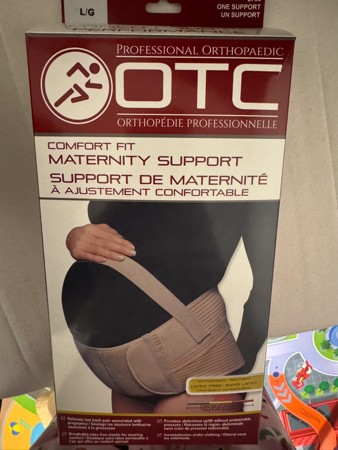 Selling an OTC Comfort Fit Maternity Support in size L/G. It helps relieve low back pain associated with pregnancy and provides abdominal uplift without undesirable pressure. It's breathable, latex-free, and elastic for wearing comfortably under clothing.