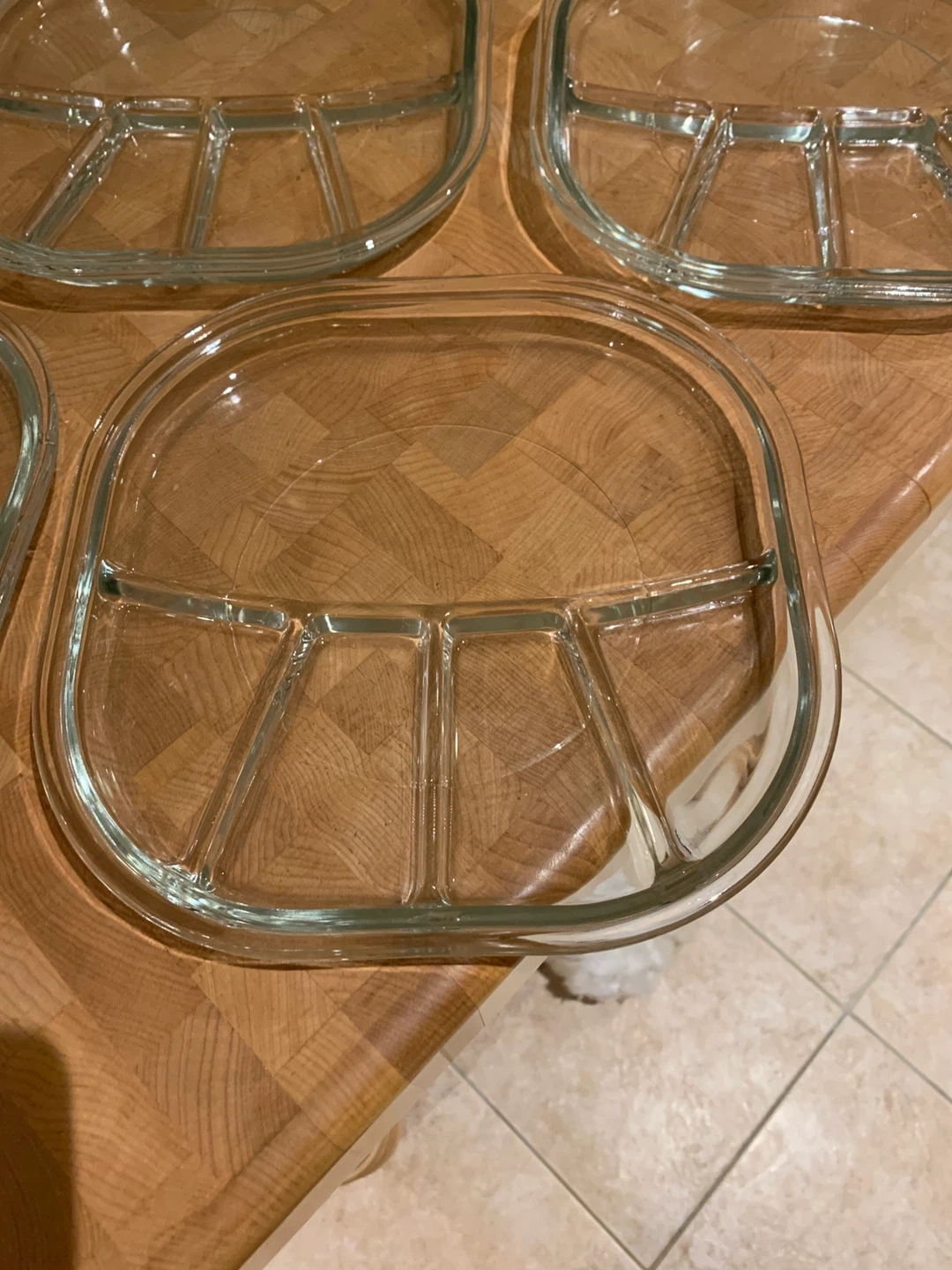 Each dish has three divided sections, perfect for serving snacks or appetizers. They're in great shape and ready to use!