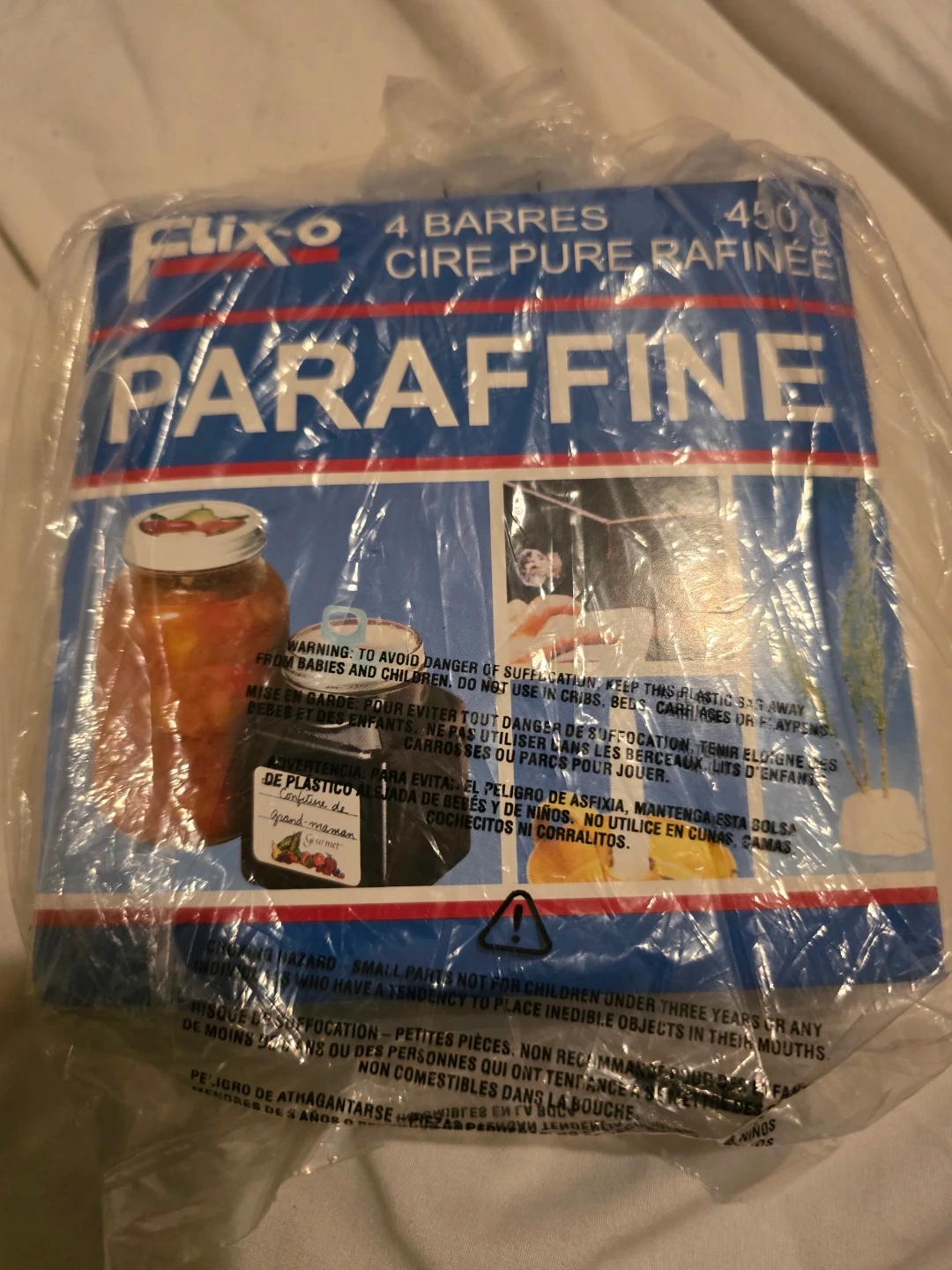Selling a package of Flixo Paraffin Wax, which contains 4 bars and weighs 450g. It's pure refined wax, perfect for various uses!