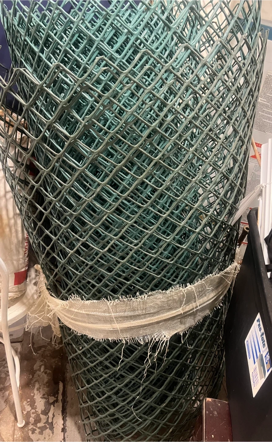 Selling a roll of green chain link fence. It's perfect for creating a secure boundary or enclosure for your yard or garden. It's in good condition and ready for your project! I also have a roll of old metal chain link as well(bigger than the one in the picture)to be taken along with this for your project Only $50 for both