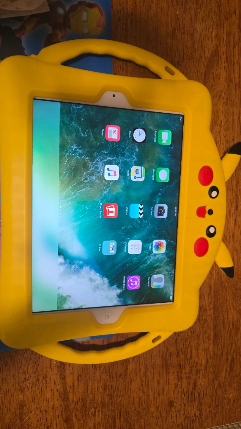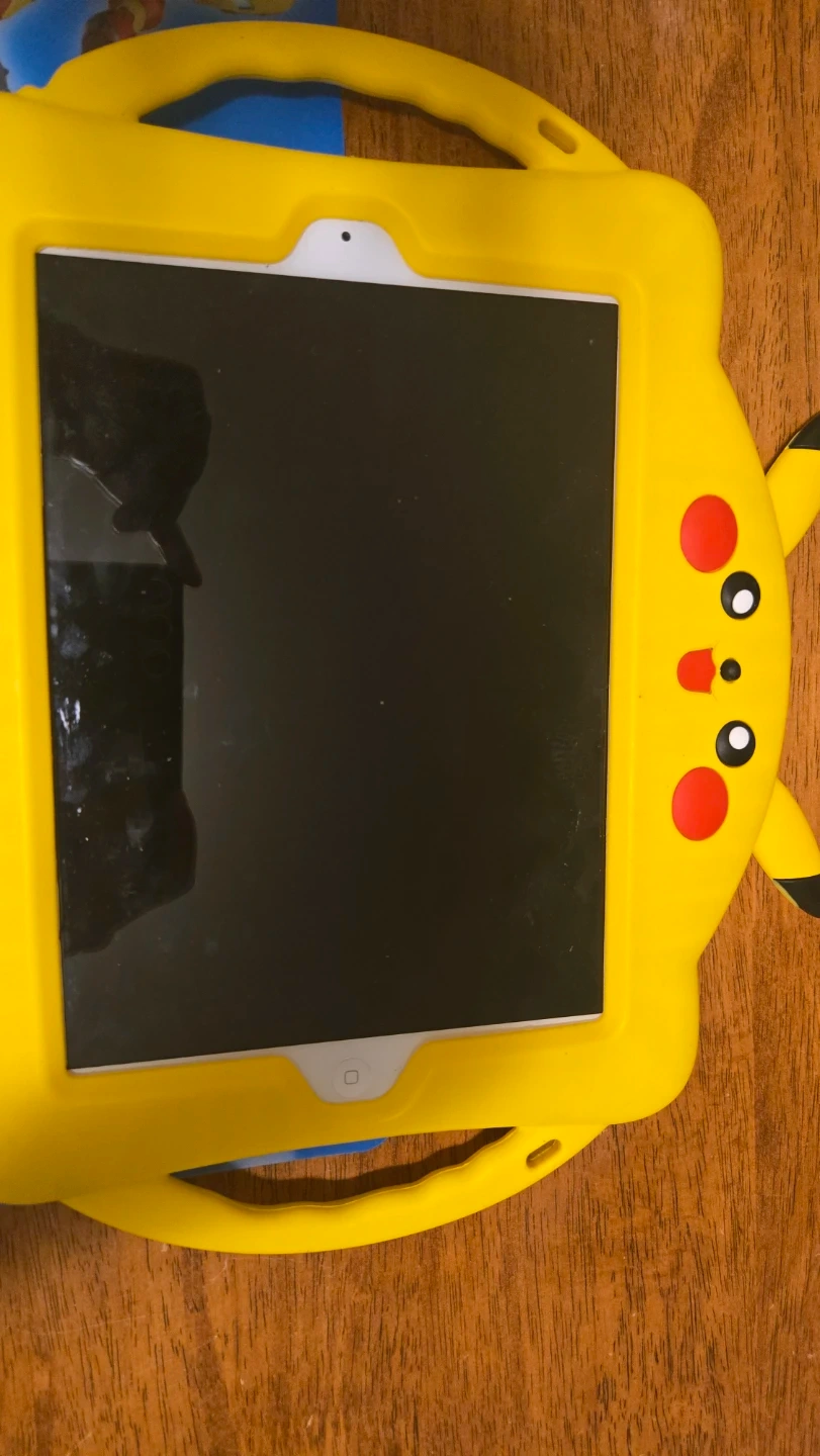 Selling an iPad in a fun Pikachu case! It's in great condition and ready for a new user. The case is bright yellow and features Pikachu's face and ears, making it perfect for kids or any Pokémon fan
