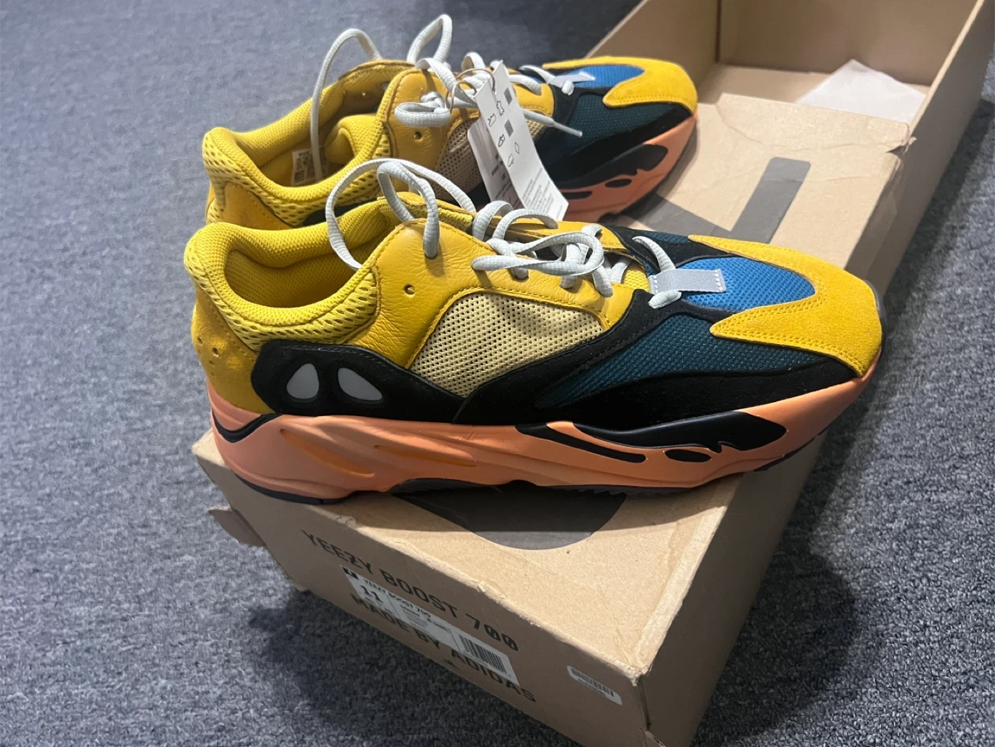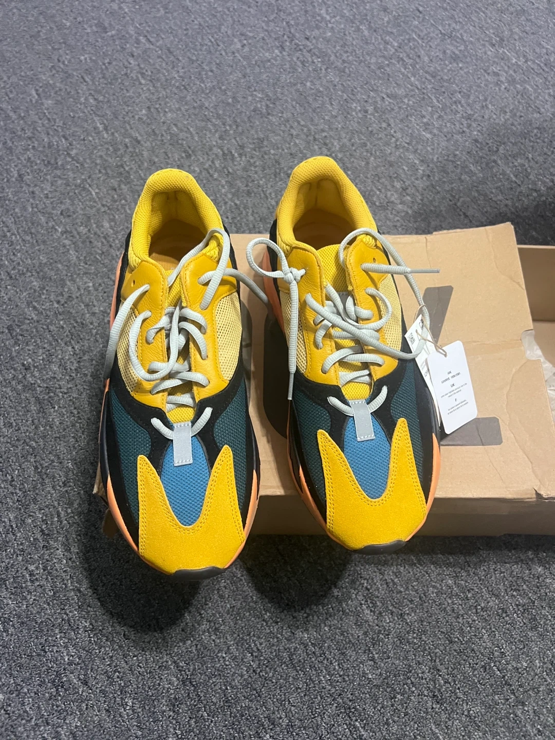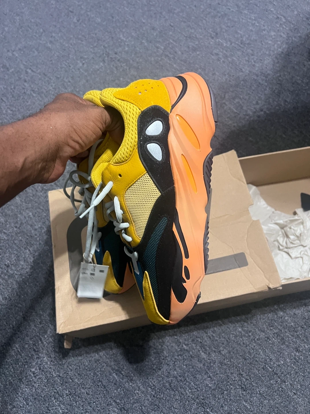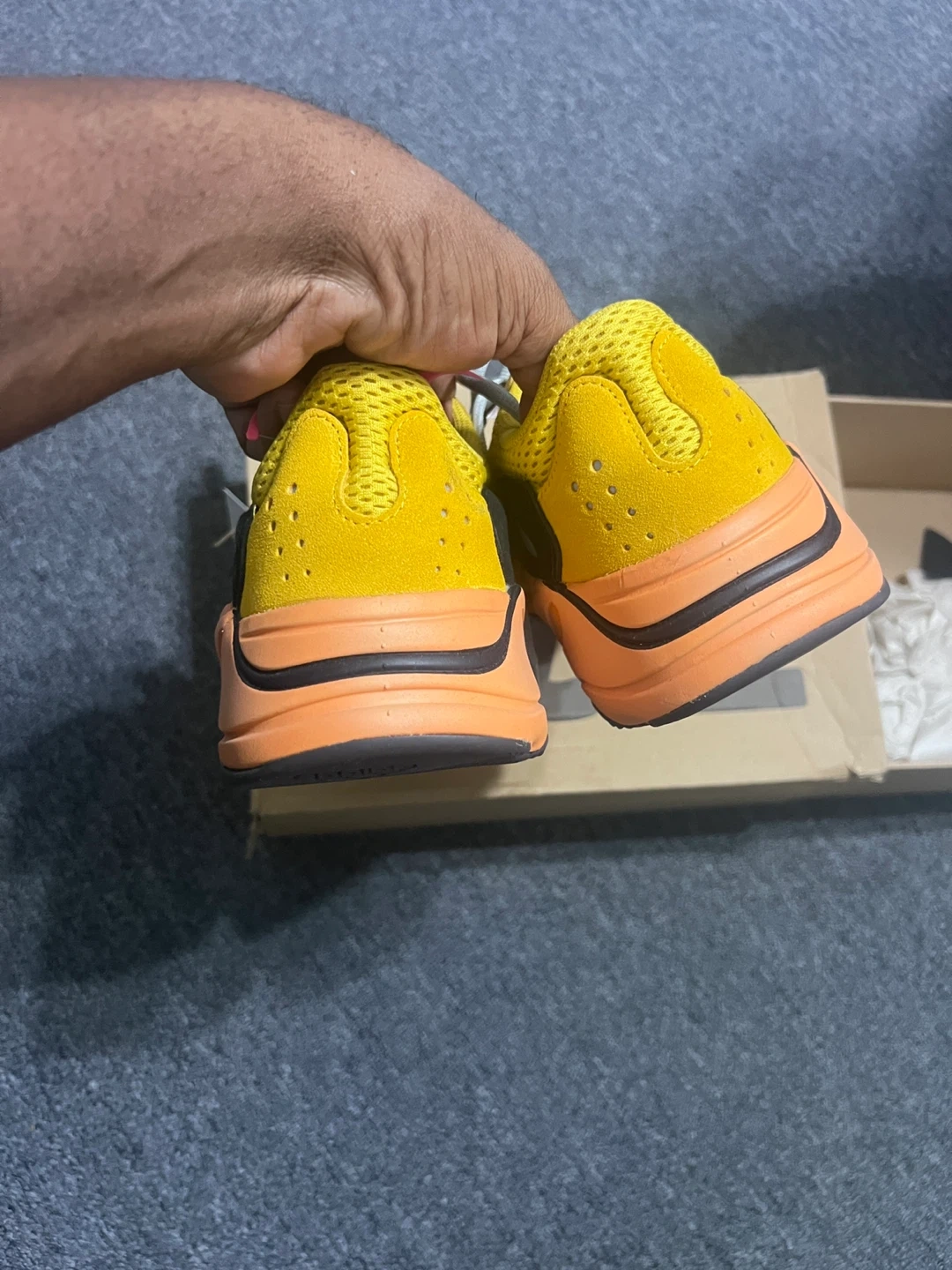 Selling a pair of Adidas Yeezy Boost 700 in the 'Sun' colorway, size 11. Comes with the original box. These sneakers are known for their unique design and comfortable Boost cushioning