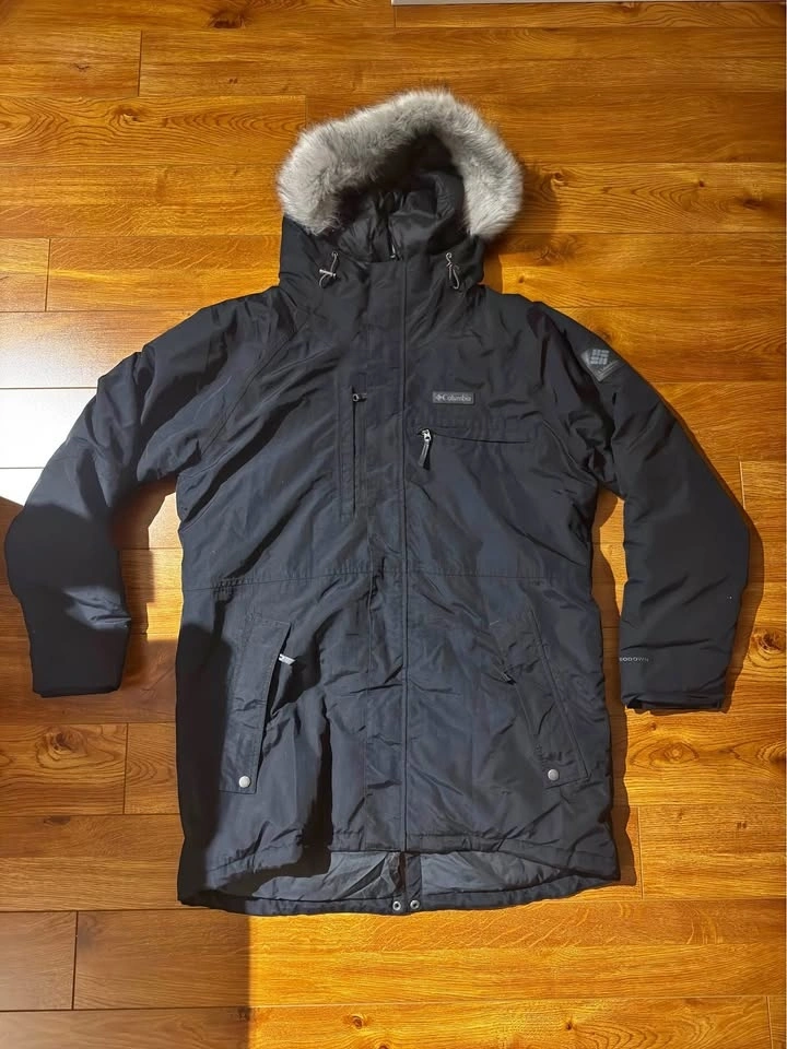 Columbia men’s winter parka with 550-fill down insulation, size Large, black. Worn for about two winters in Toronto and in excellent condition with no visible wear. Very warm and well-constructed.