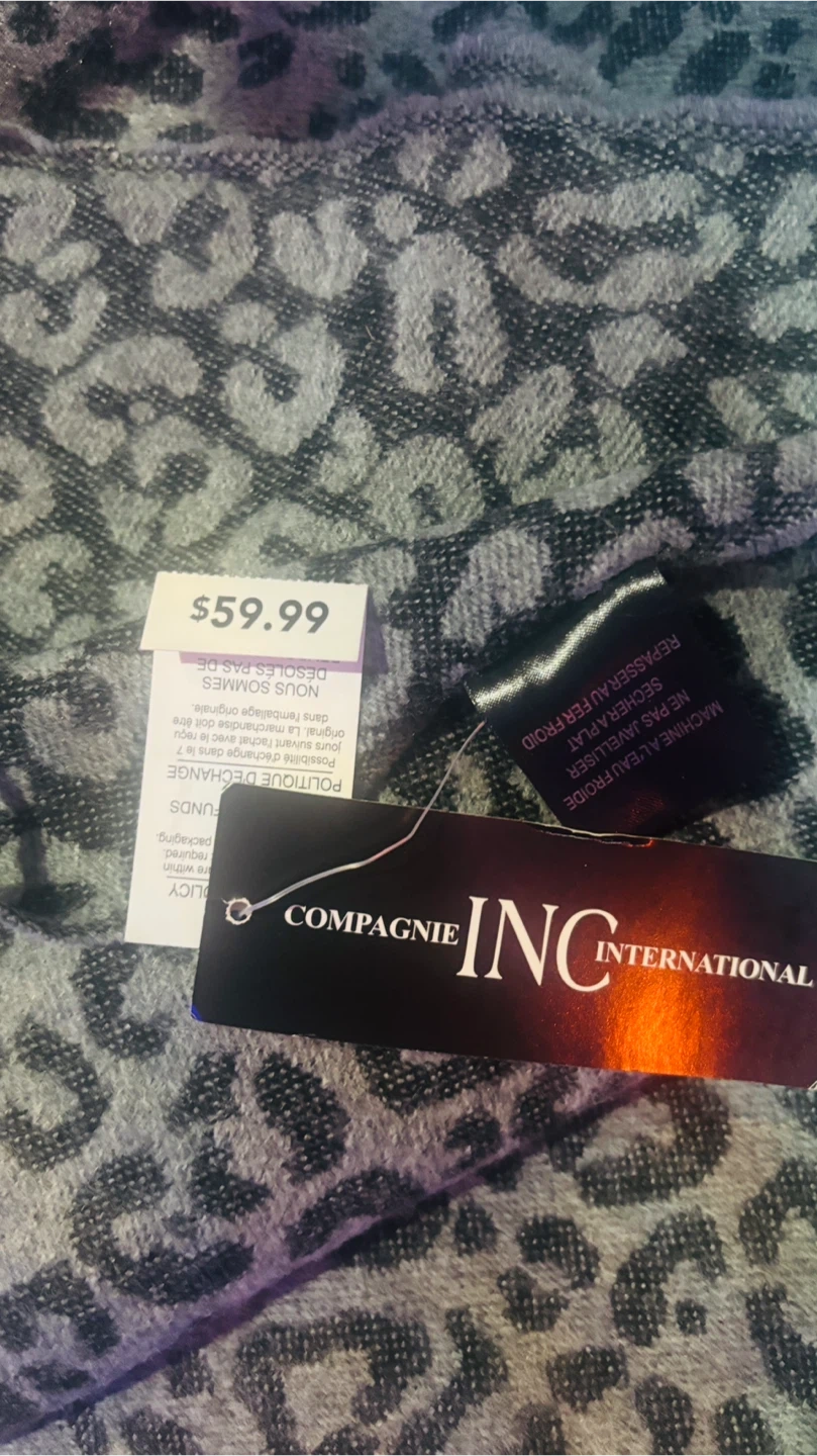 Keep cozy with this INC International Concepts throw blanket! It has a stylish grey leopard print and fringe. Originally bought for $59.99, it's in great condition and ready to add a touch of flair to your home