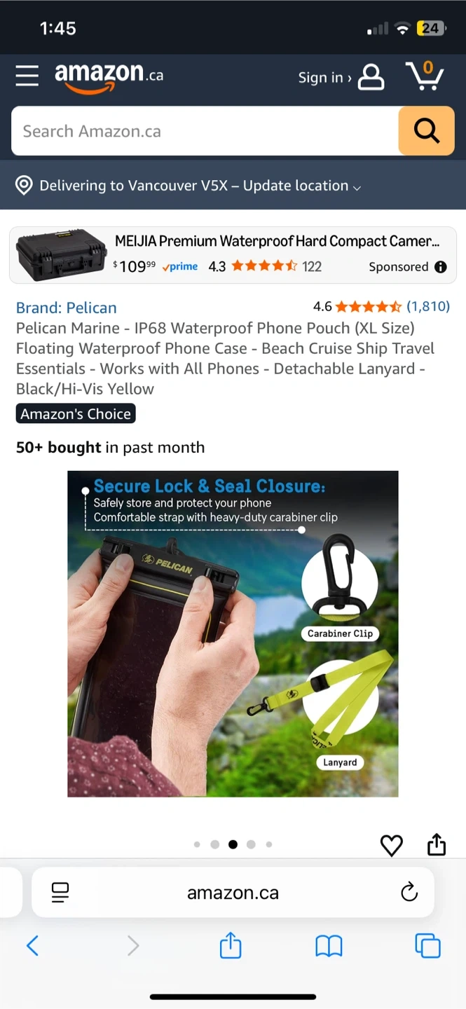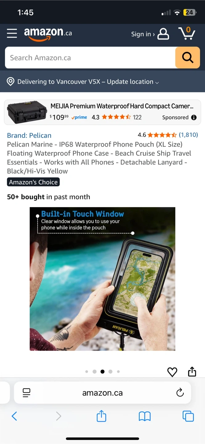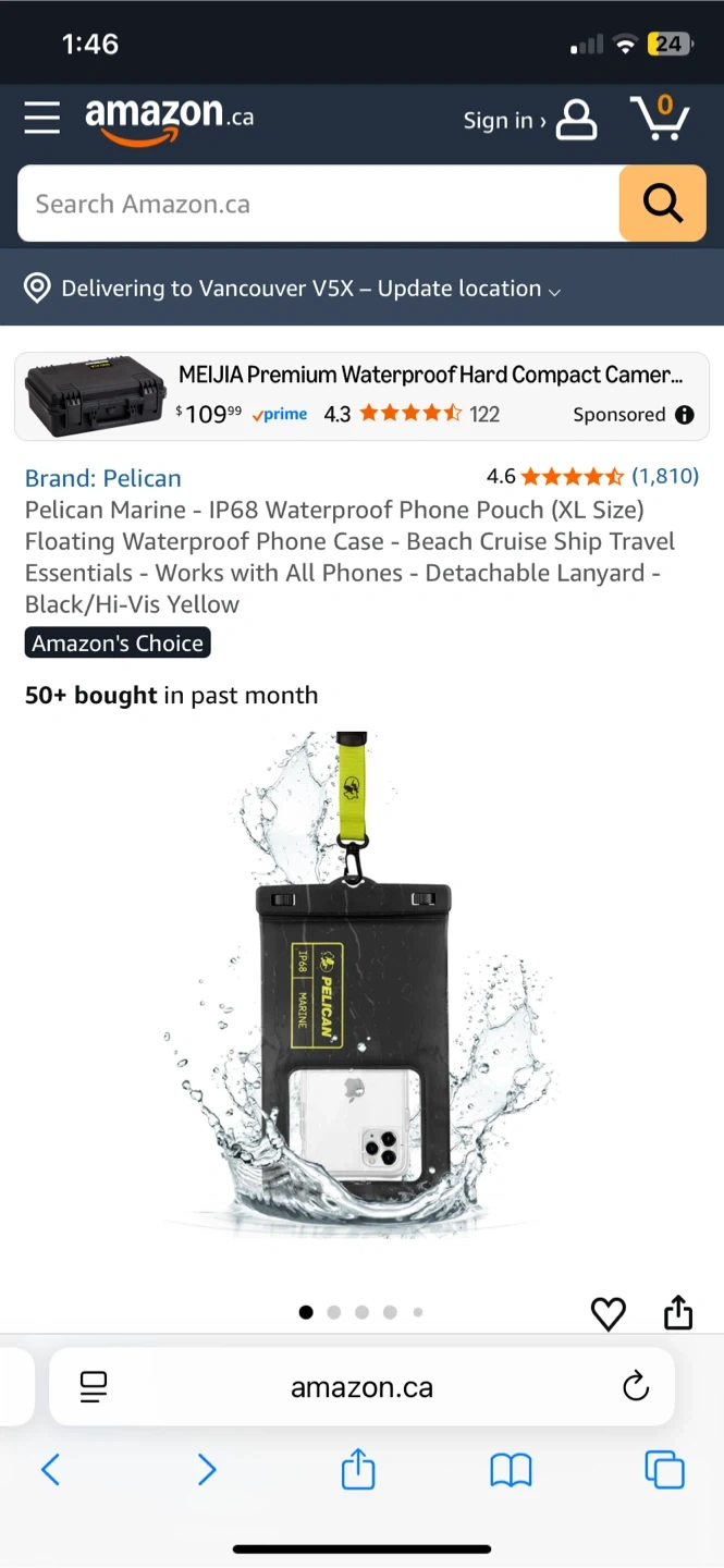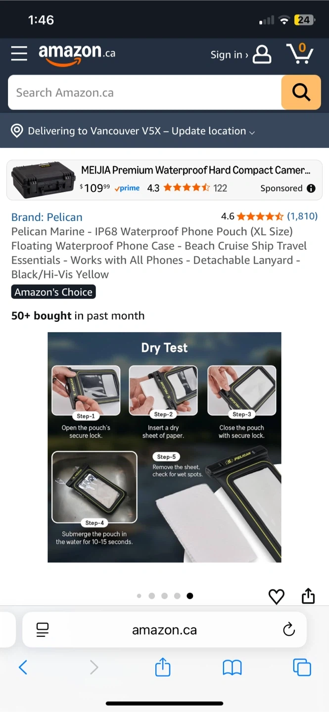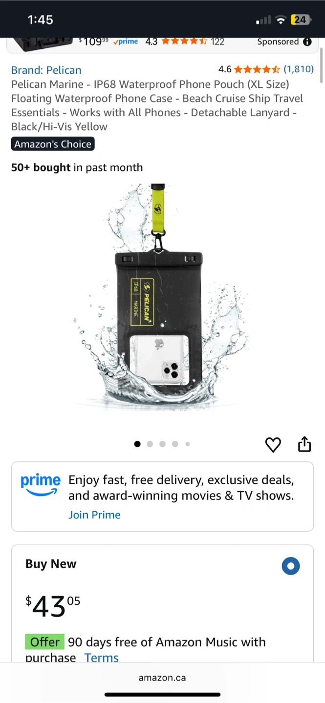 Keep your phone safe and dry with this Pelican Marine IP68 waterproof phone pouch! It's an XL size, perfect for most phones. Comes with a detachable lanyard, making it easy to carry around. Great for beach trips, cruises, or any water activity where you want to protect your phone.