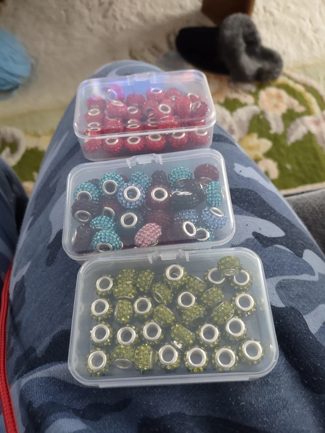 Add a sparkle to your crafts with these colourful rhinestone beads! These beads are in used condition and are perfect for various DIY projects, from jewellery making to embellishing clothing and accessories. 10.00 ea * Three containers of assorted colou