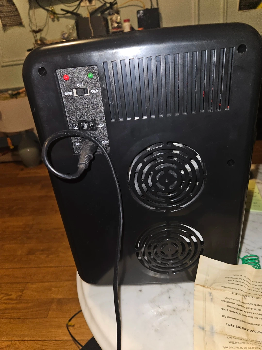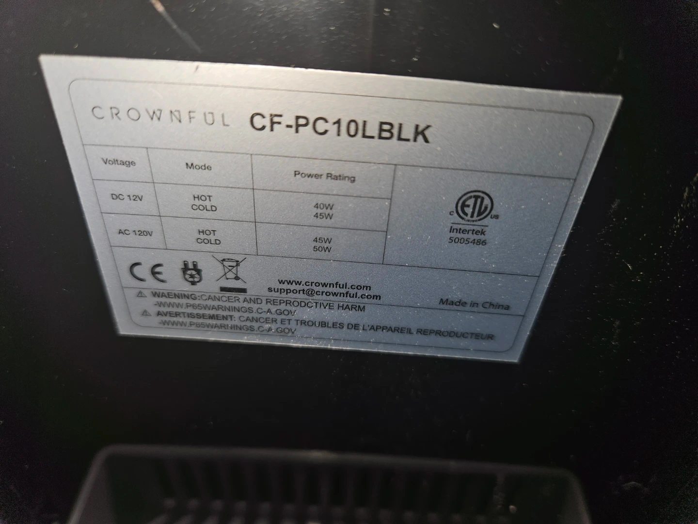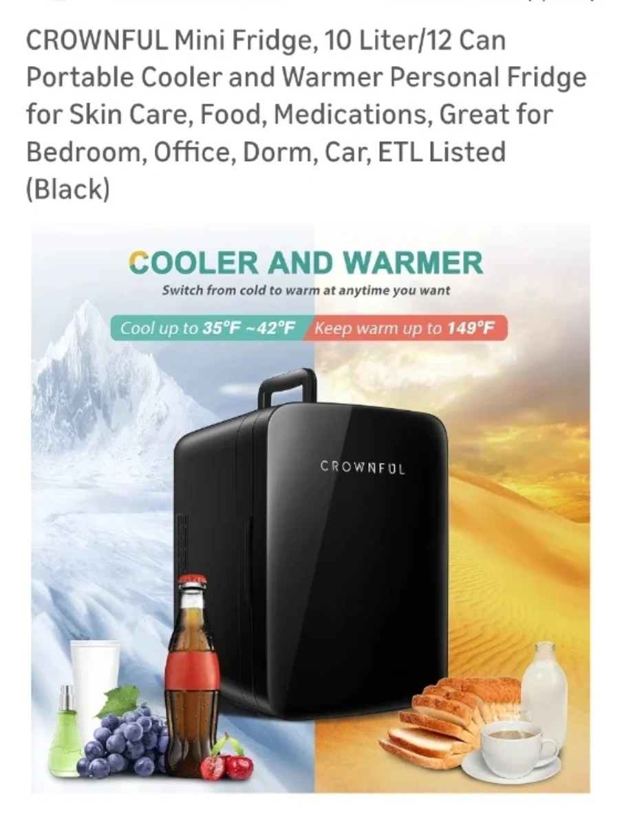 Selling a black Crownful mini fridge. It has settings for both warm and cold, and includes a DC 12V and AC 120V power adapter. Great for keeping your drinks or snacks cool!