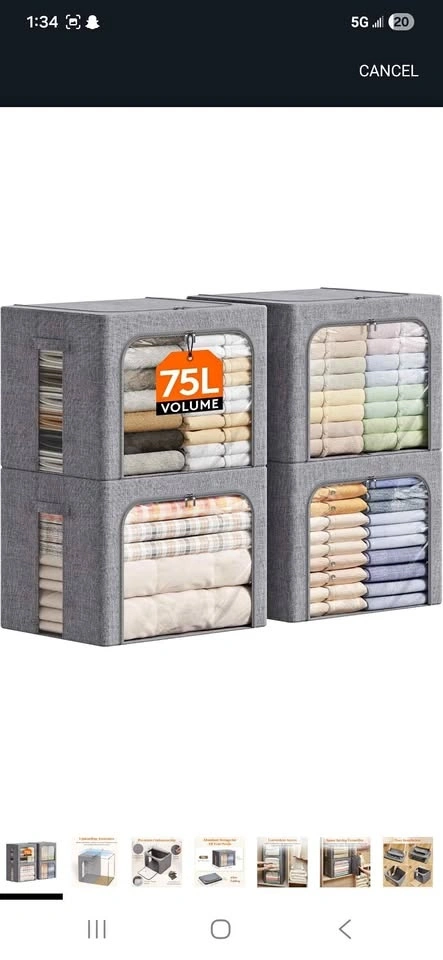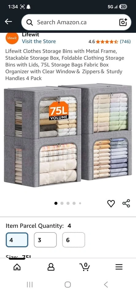 Brand New Lifewit Clothes Storage Bins with Metal Frame, Stackable Storage Box, Foldable Clothing Storage Bins with Lids, 75L Storage Bags Fabric Box Organizer with Clear Window& Zippers& Sturdy Handles 4 Pack. Each $15, make a deal and take all.