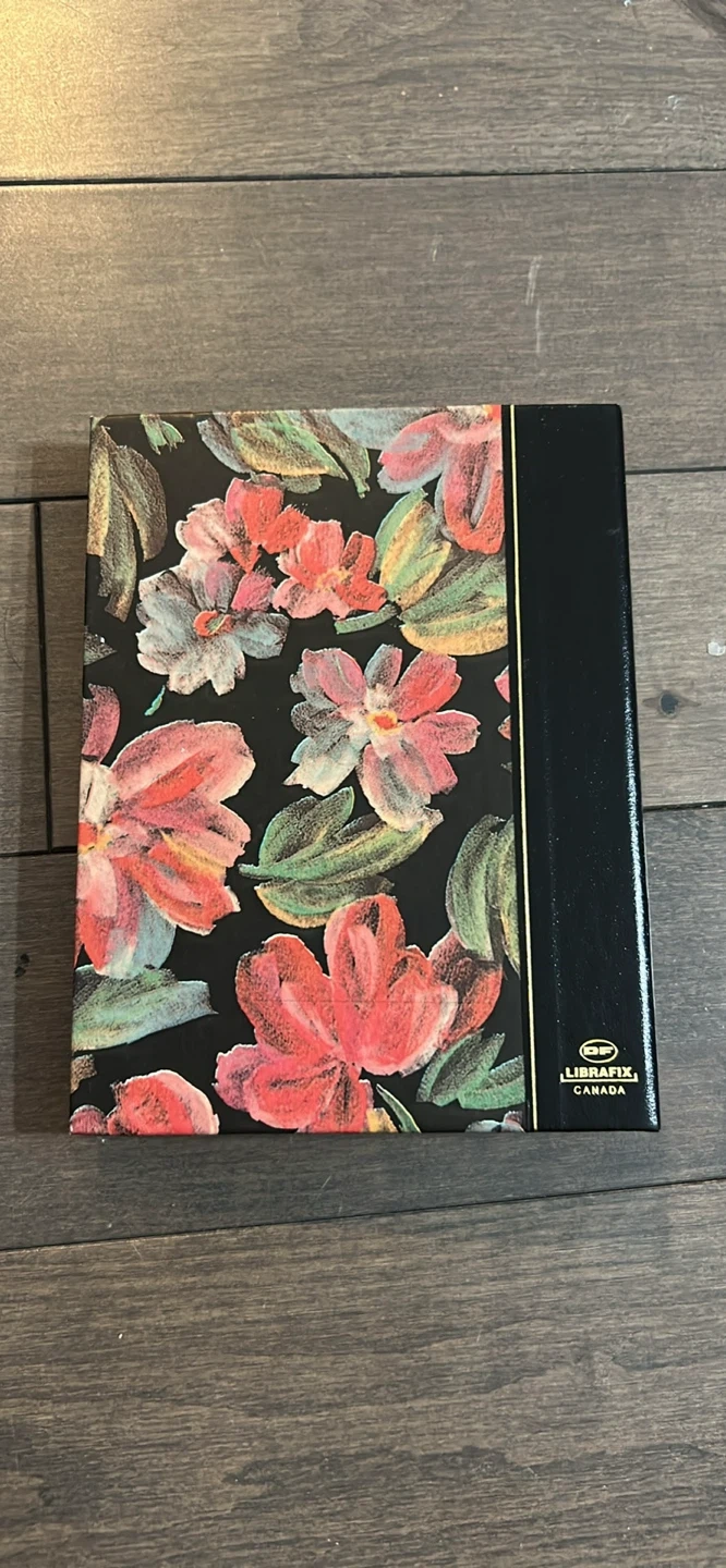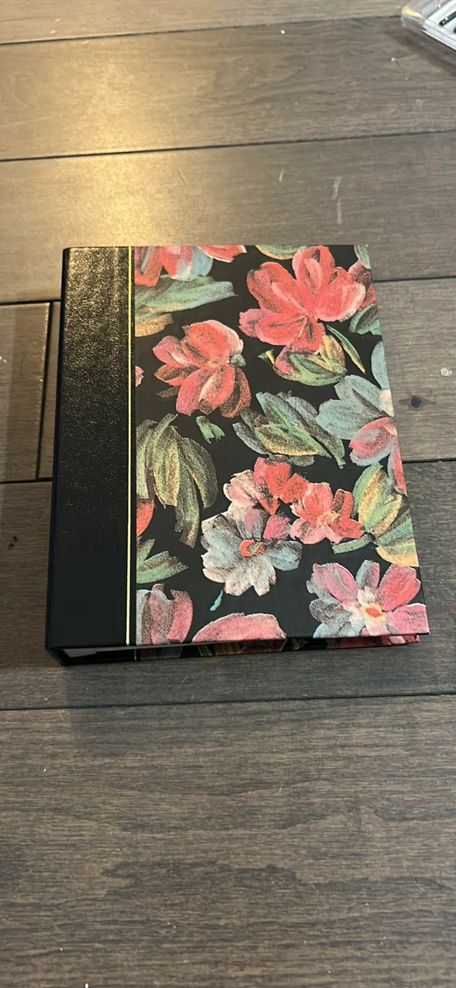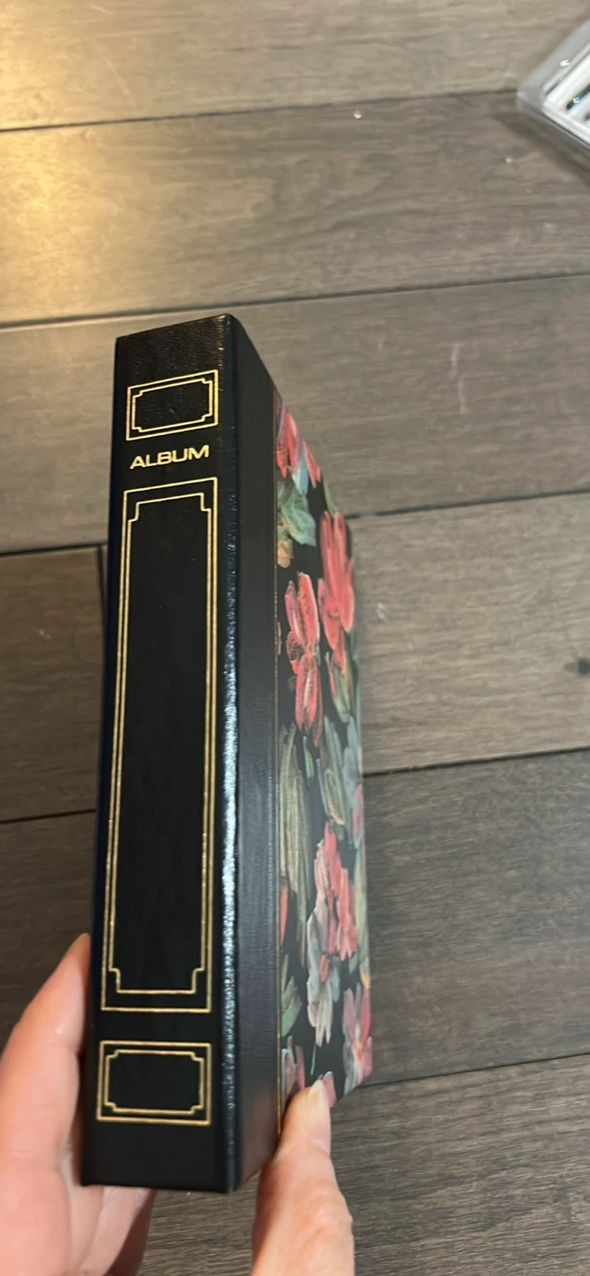 Selling a brand new photo album! It features a beautiful floral design on a black background. Perfect for storing your cherished memories. I bought it for organizing my small paintings 4x6”