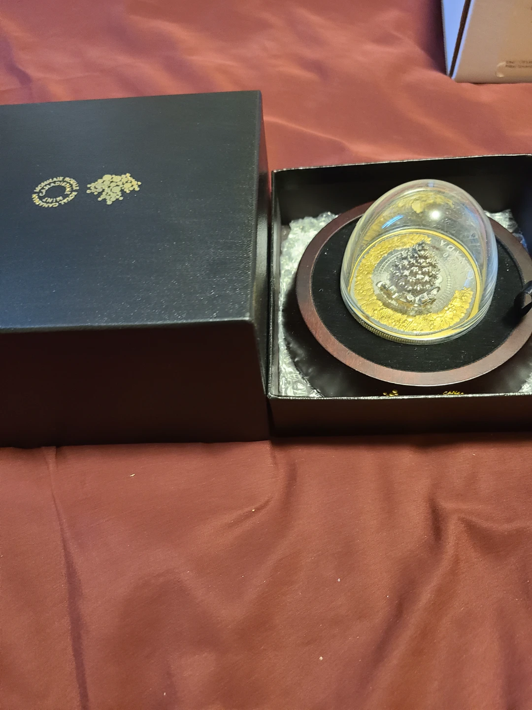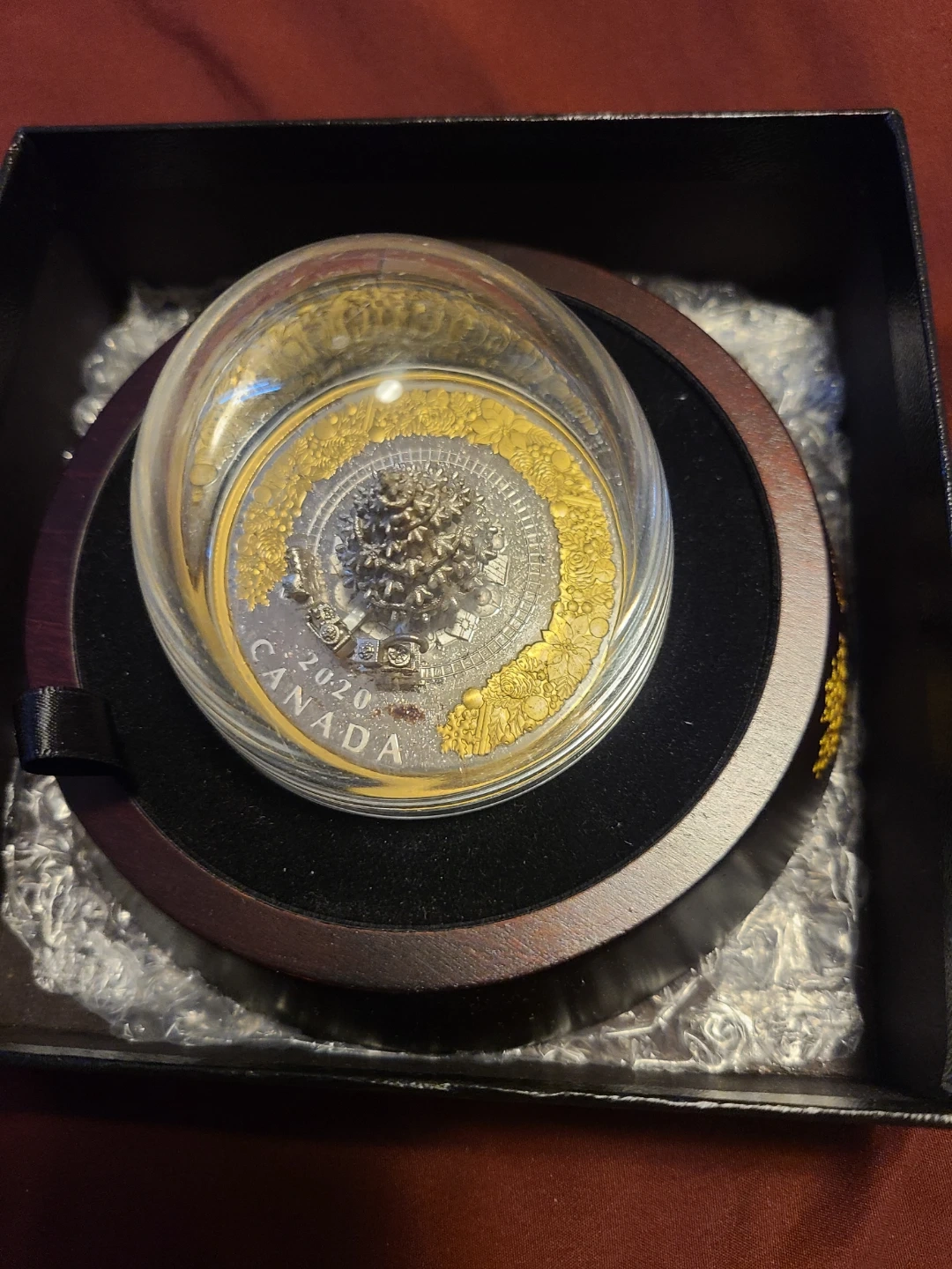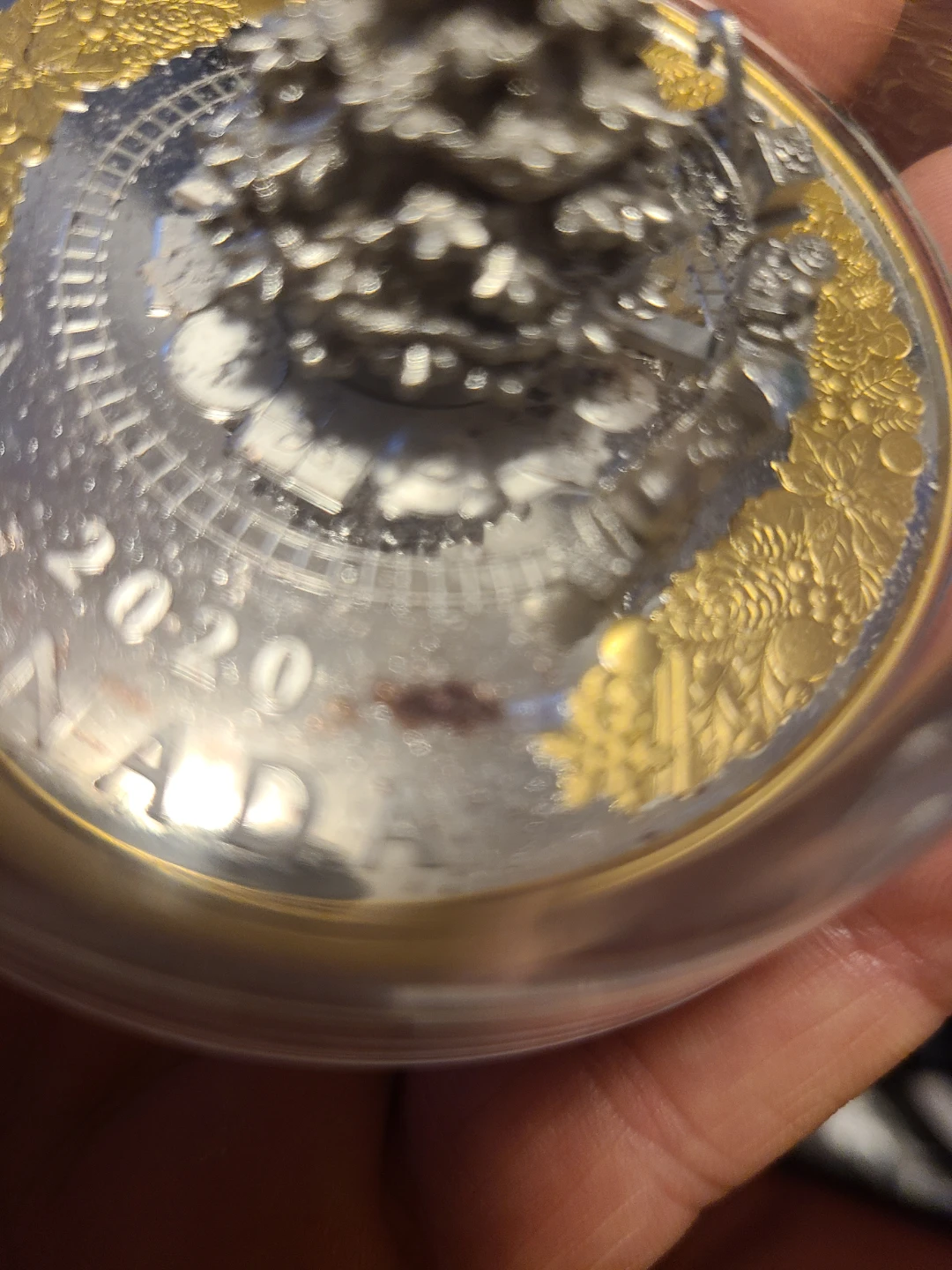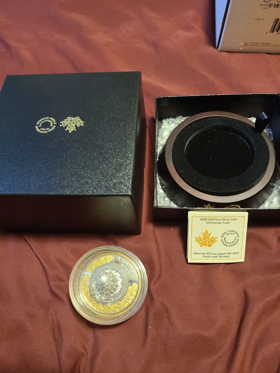 Selling a 2020 5oz Christmas Train silver coin. Highly collectible with a mintage of only 1000 for the world. Comes in a dome like capsule, with COA, in the original packaging. The coin has a mark beside the "2020", (black spot) that's why the price is only $680. This coin is made of 5oz of 99.99% pure silver and the tree and train made of about 2oz of sterling silver.