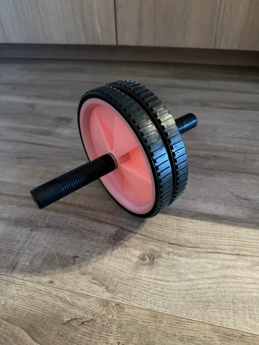 Ab roller wheel in great condition! This wheel is perfect for core workouts and is lightweight and portable. It features a pink wheel with black handles and tire treads. Pick up by the eaton center.