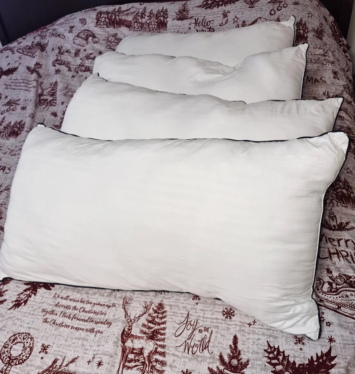 4 King sized pillows, a Christmas gift- washed