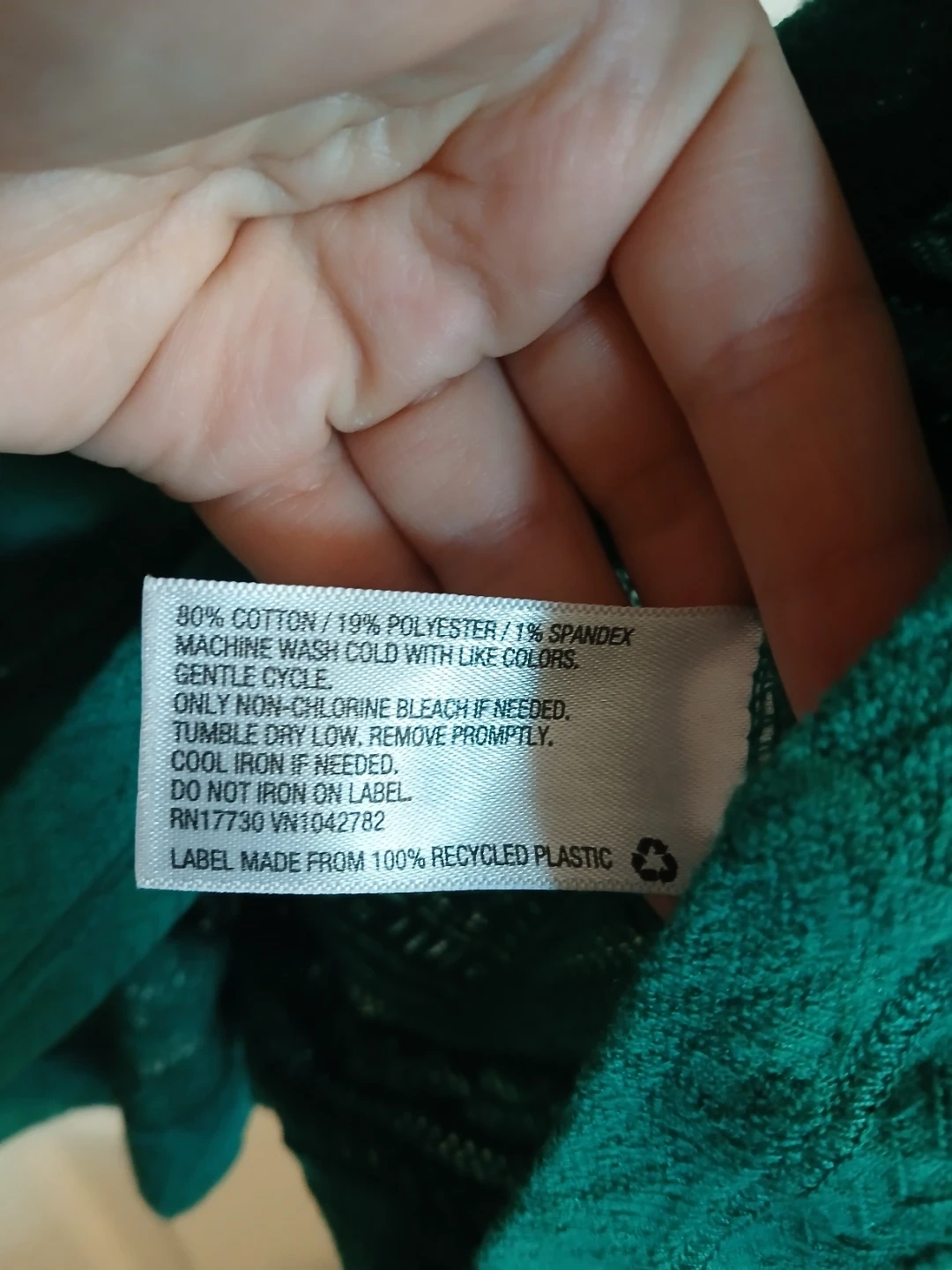 Composition / material: 80% cotton, 19% polyester, 1% spandex