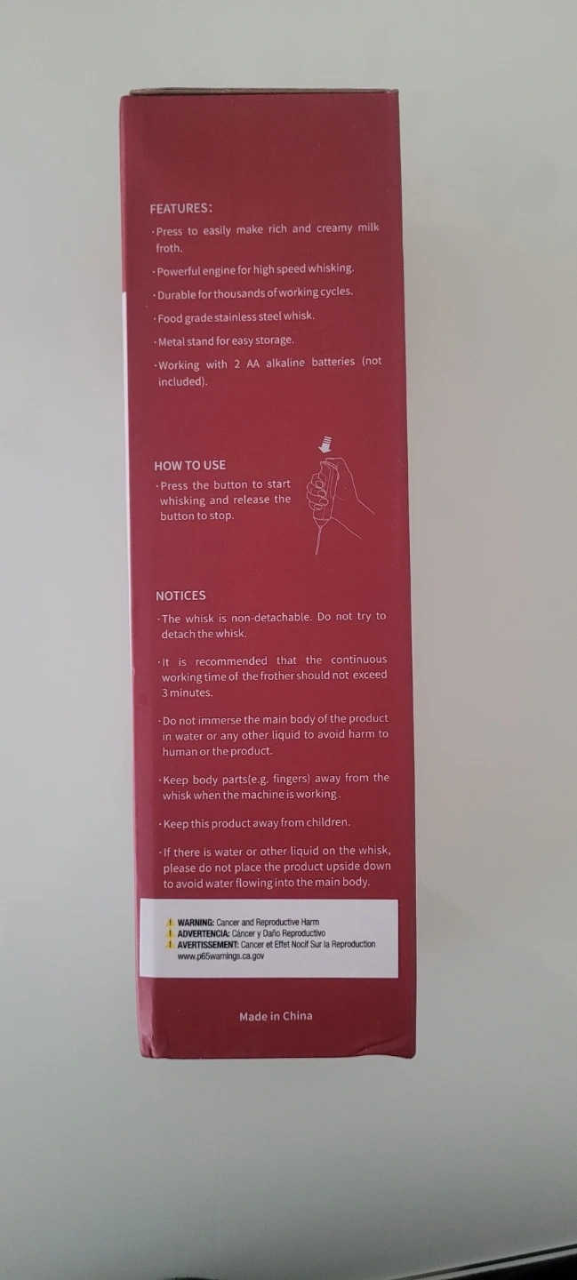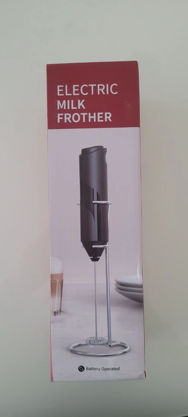 I'm selling an electric milk frother, still new in the box! It features a powerful engine for high-speed whisking, capable of thousands of working cycles. The whisk is food-grade stainless steel. It also comes with a metal stand for easy storage.