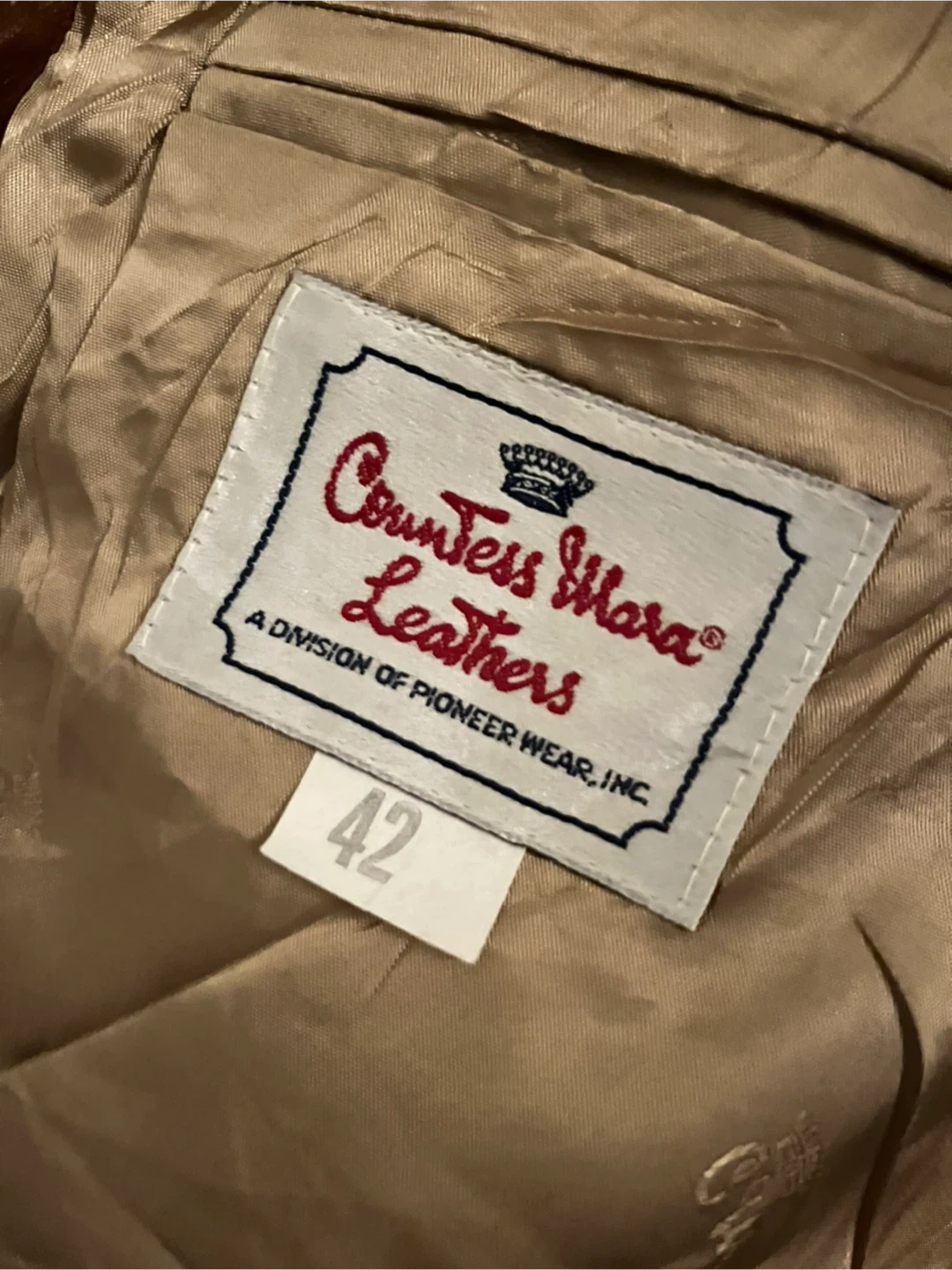 Selling a unisex Countess Mara leather jacket in size 42. It's a stylish piece with a classic design. Perfect for adding a touch of sophistication to your wardrobe!