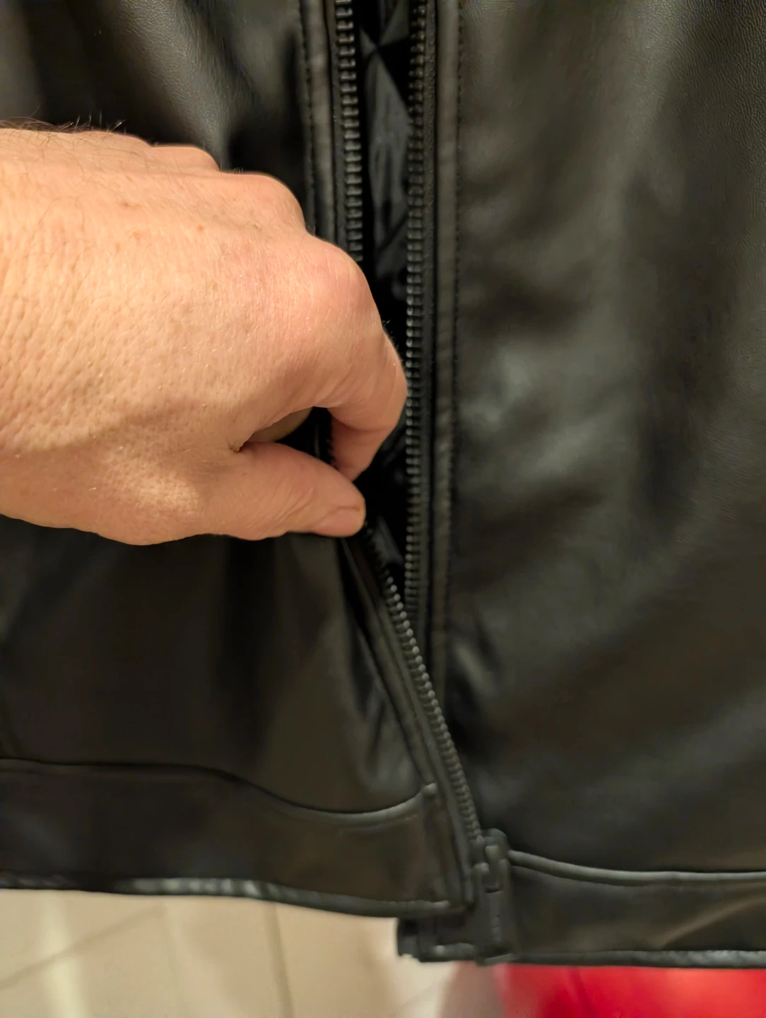Stylish black faux leather Guess jacket with a quilted lining for extra comfort.