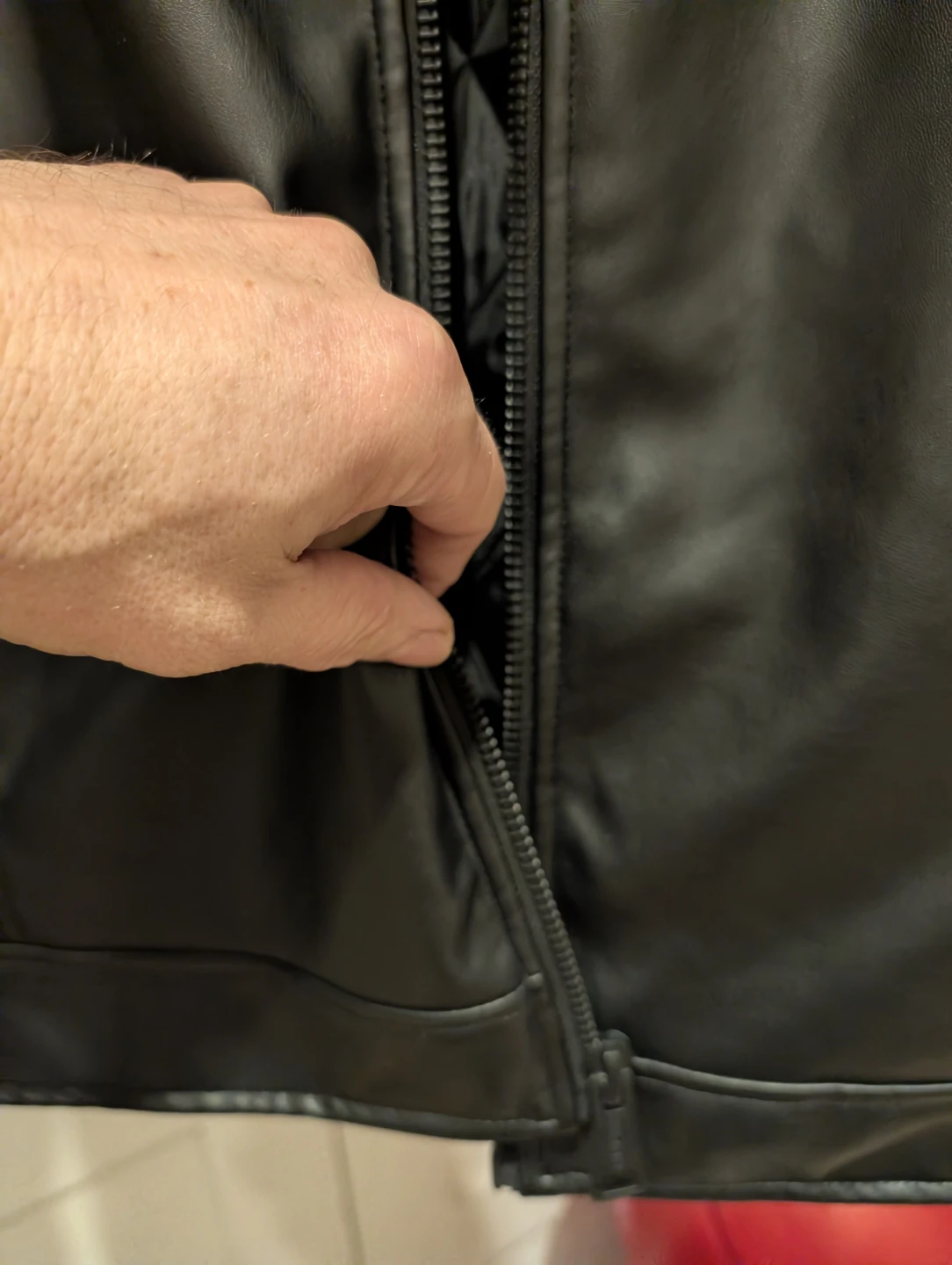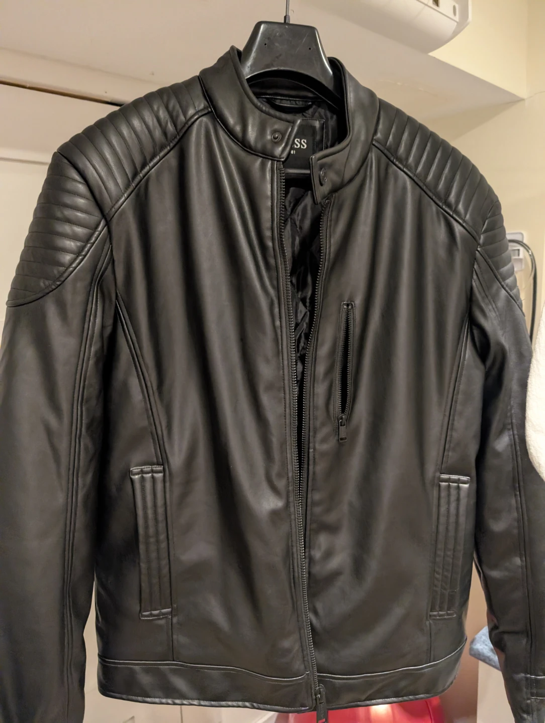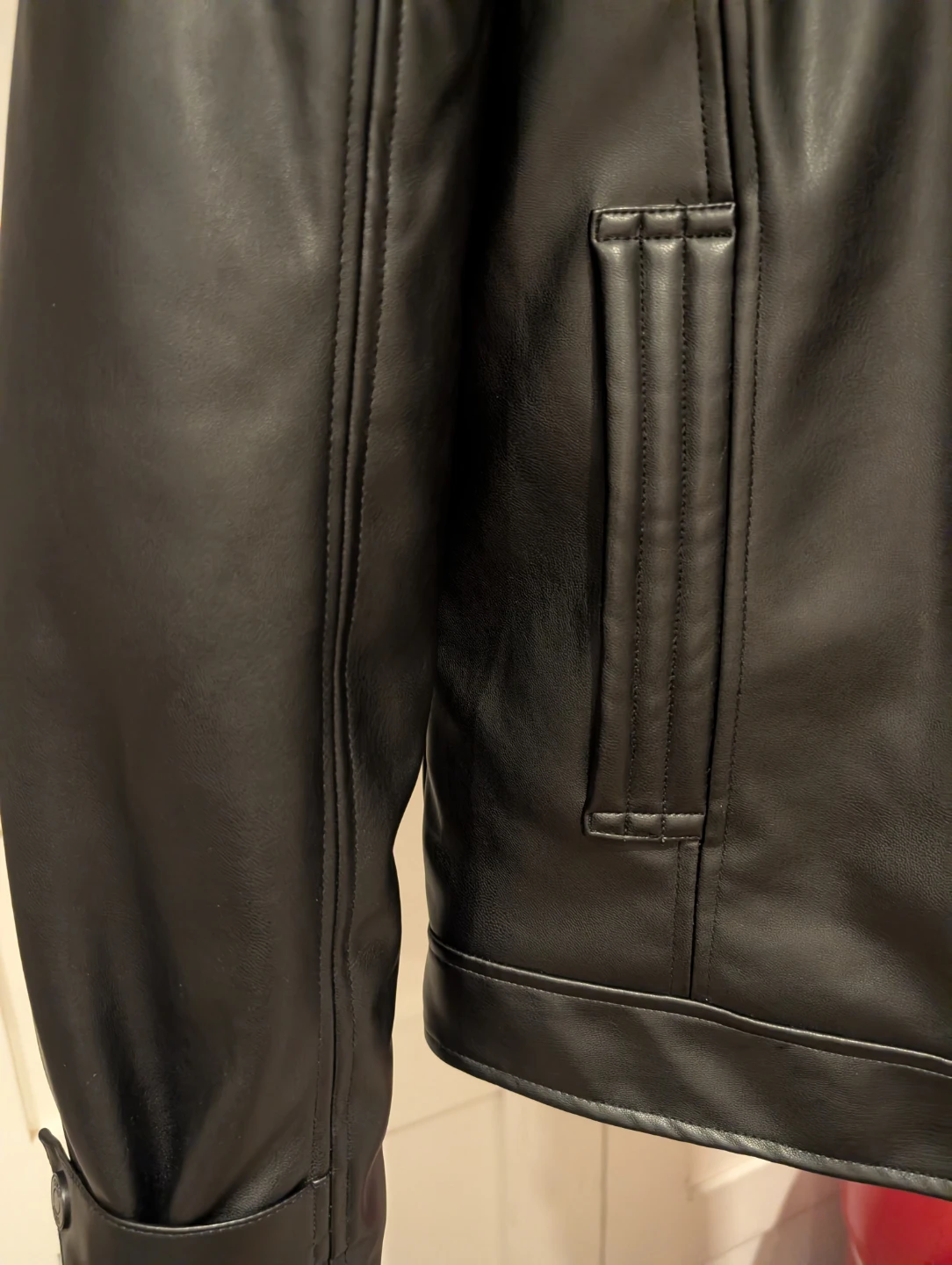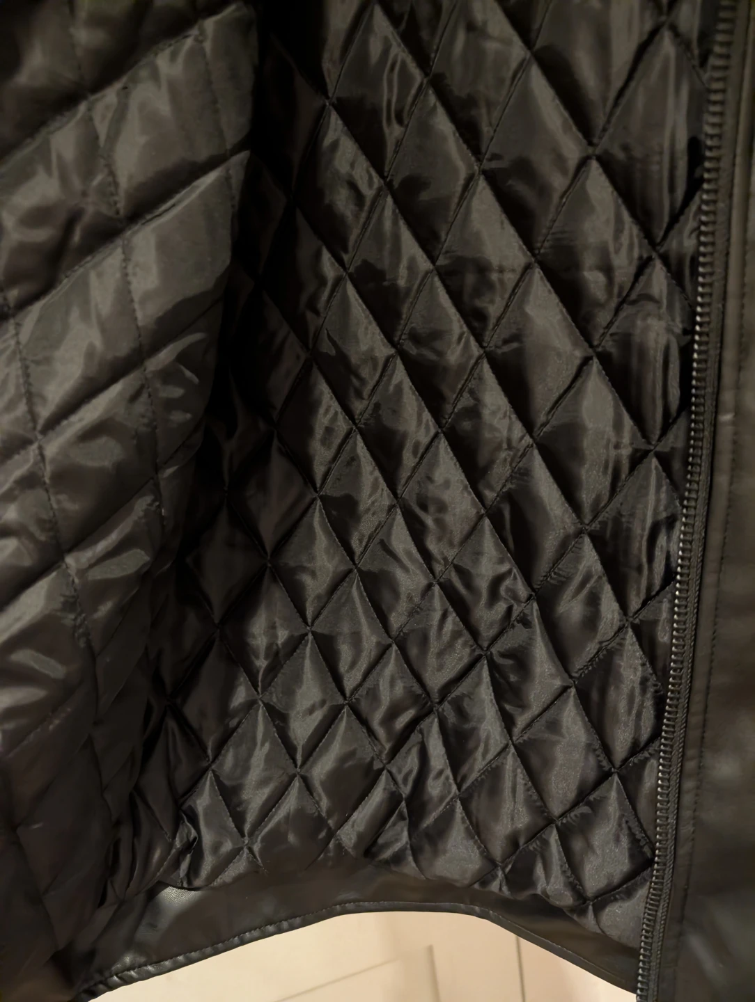 Stylish black faux leather Guess jacket with a quilted lining for extra comfort.