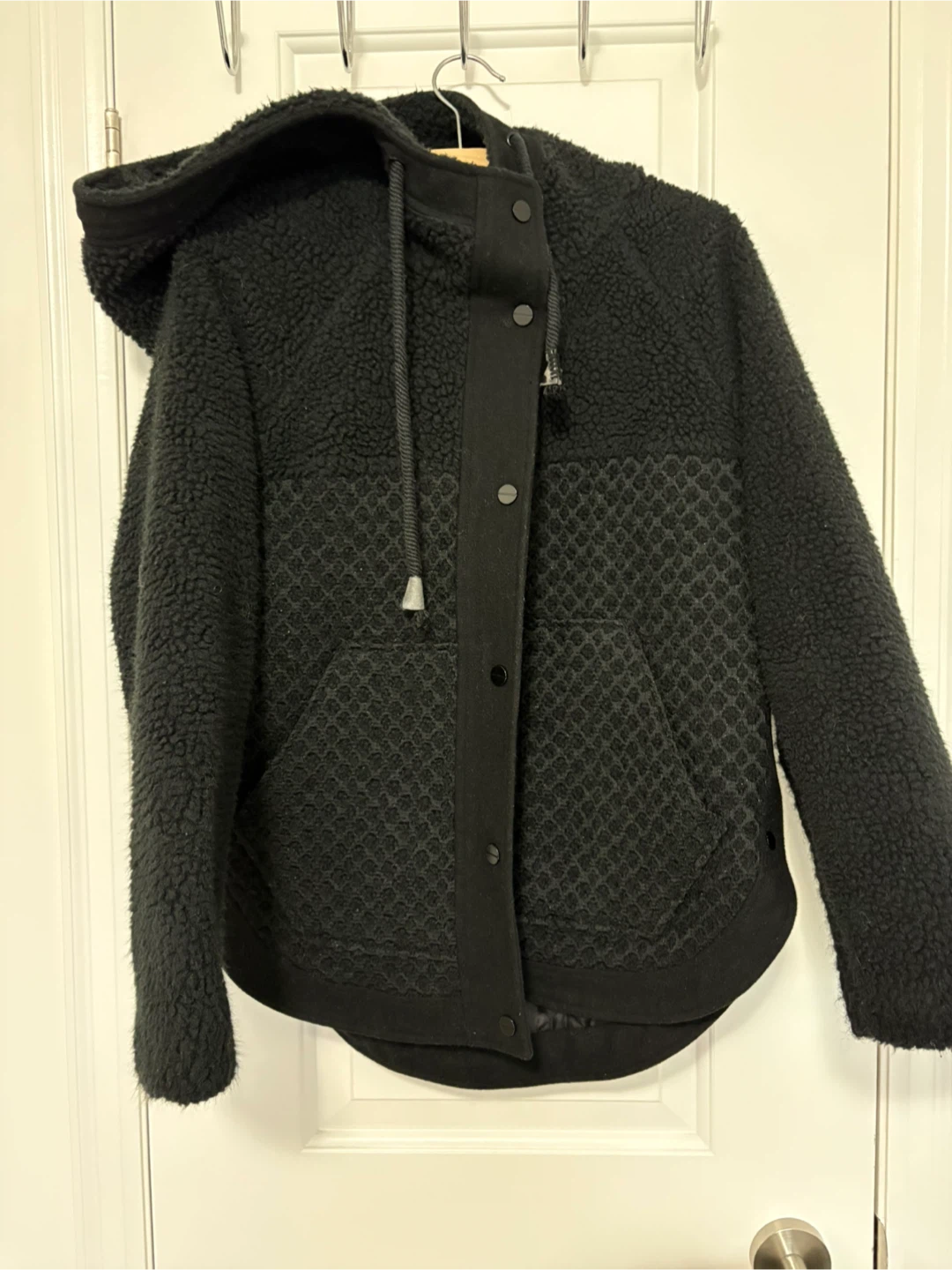 Size large lined black sweater jacket in great condition. Basic House. Has a hood. I’m a medium for reference. Nice and warm and cosy! Pickup near Sherbourne and Adelaide St East or sometimes at some TTC stations.