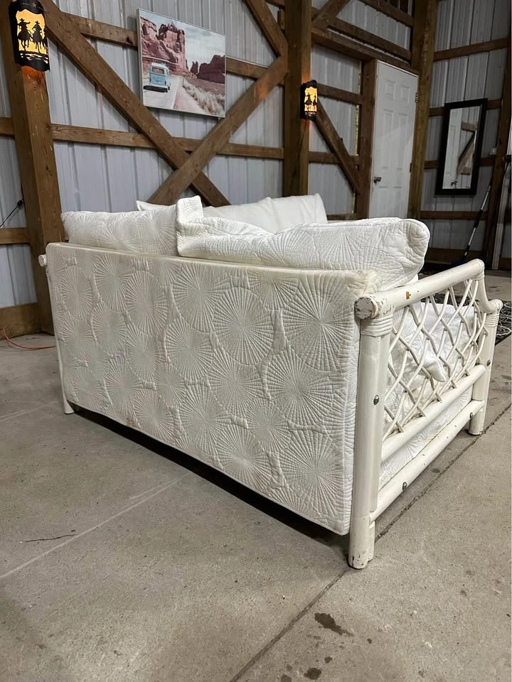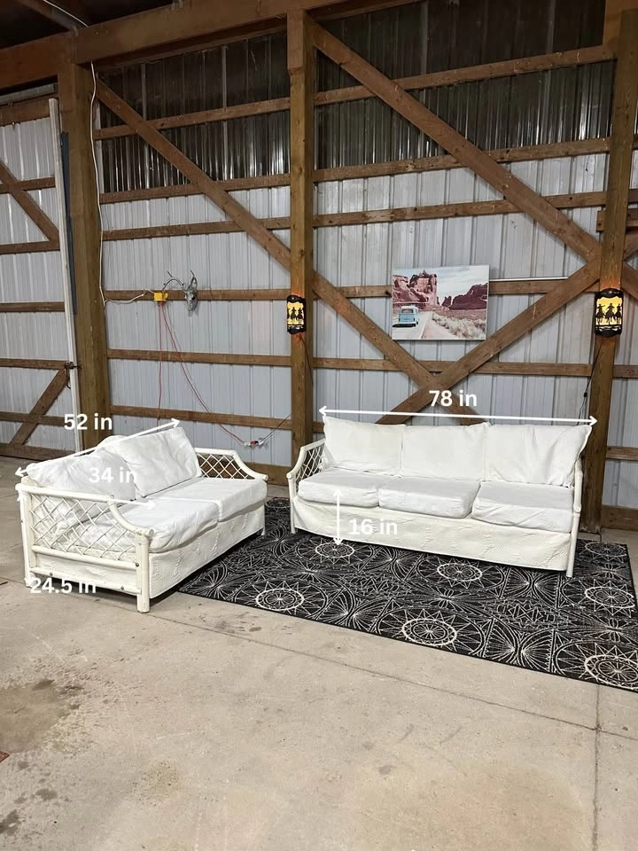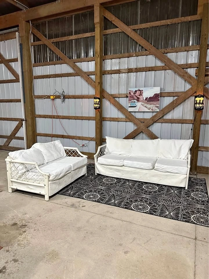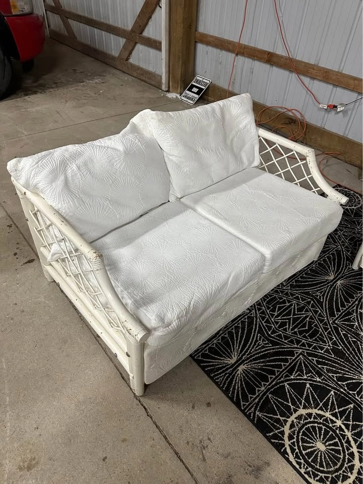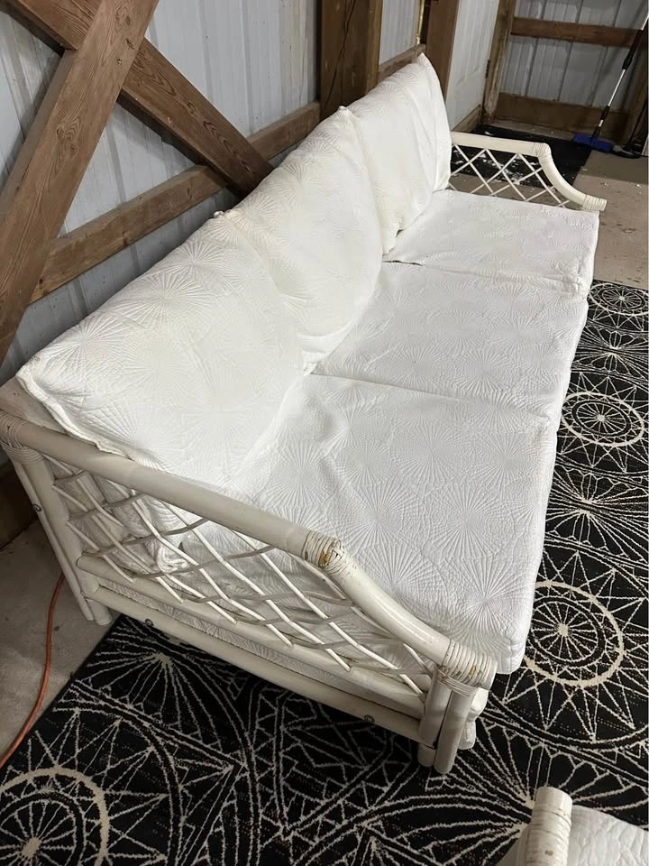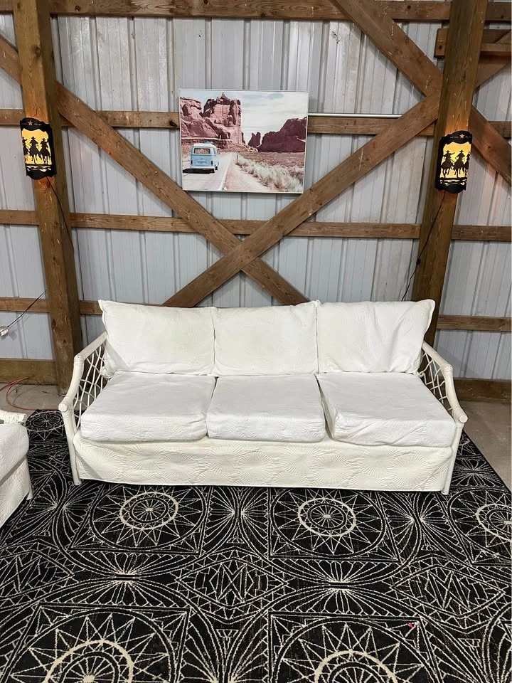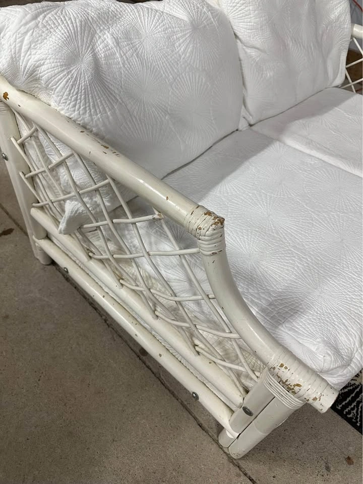 $300 Vintage White Boca Rattan 3+2 Sofa and Loveseat.