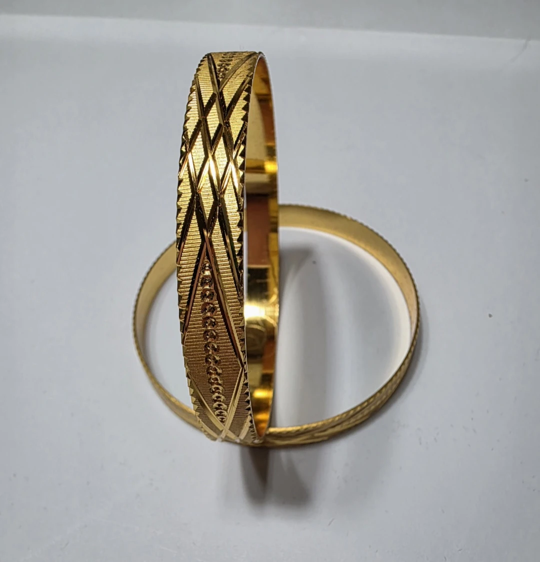 Selling a beautiful gold bangle bracelet. It has a lovely detailed pattern. Perfect for adding a touch of elegance to any outfit!