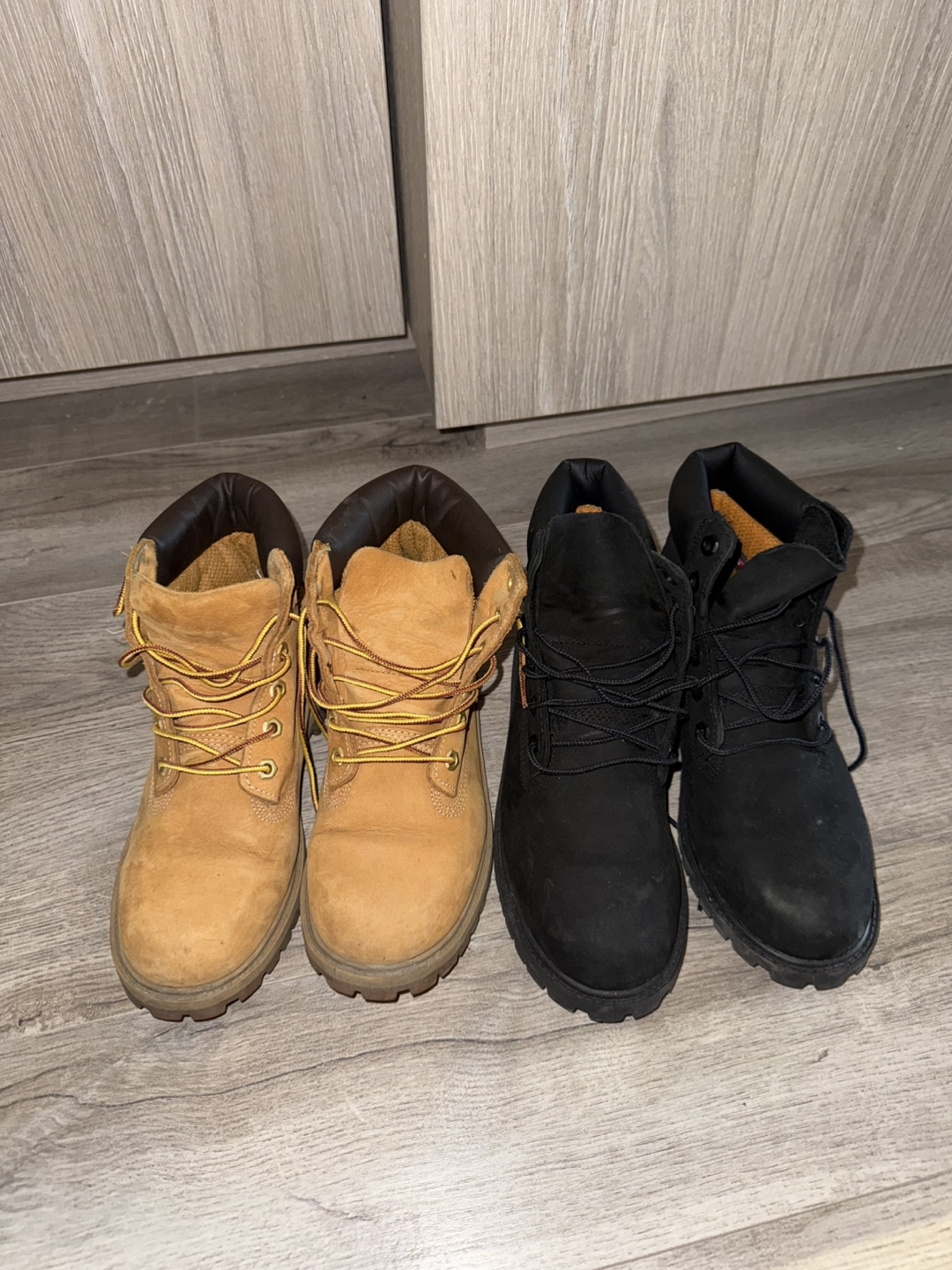 Selling Timberland boots. One is the classic brown colour in size 5.5 and the other is black in size 6. Good for the winter time. Both are in good condition. $20 each