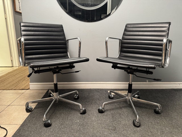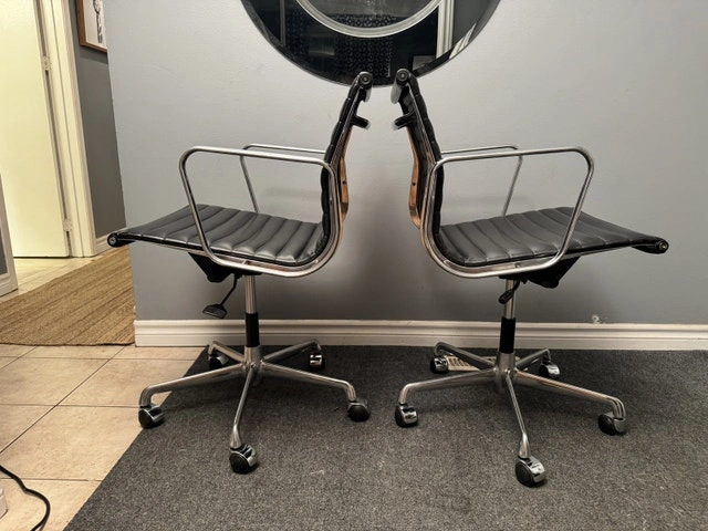 Postmodern Eames® Aluminum Group Management Chair by ICF - made in Italy Height adjustable - swivels - reclines Polished aluminum $575 each