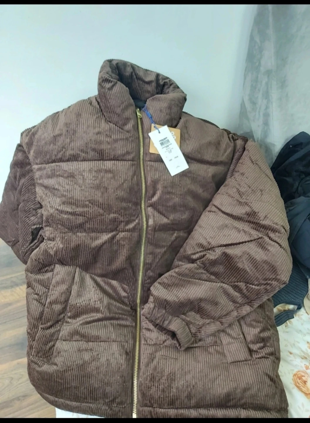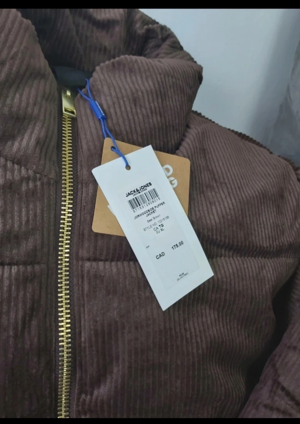 Brand new Jack and Jones Brown corduroy puffer jacket with gold zipper.