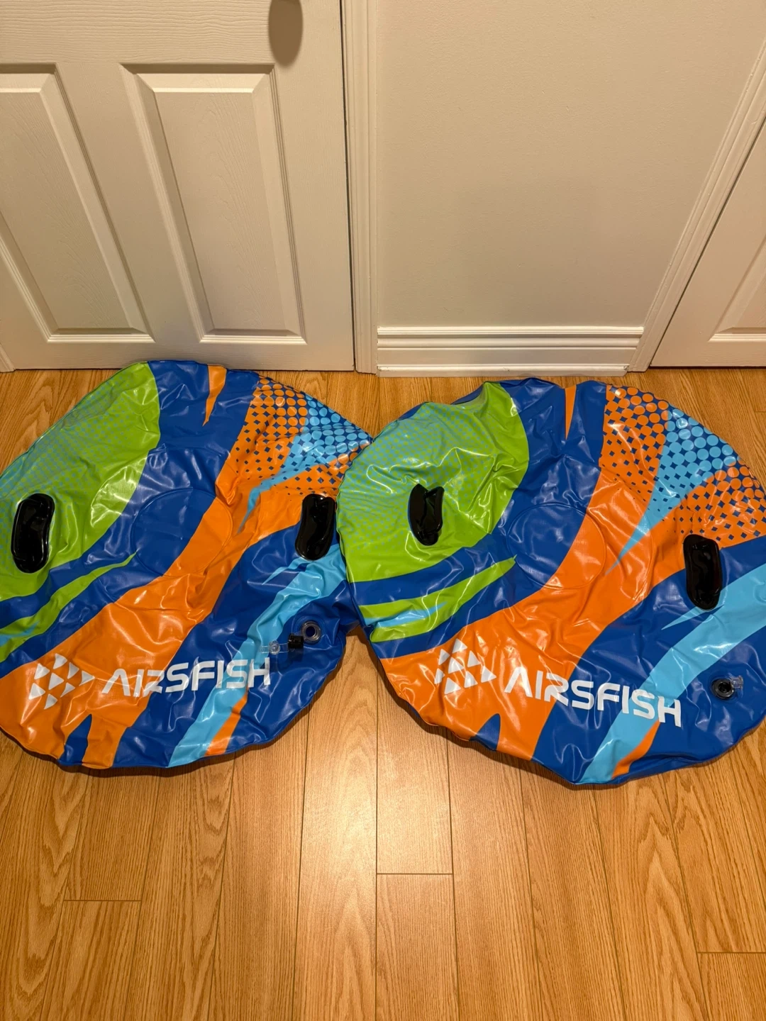 Get ready for some winter fun with this AirFish Snow Tube! They are 36 inches, perfect for kids and adults. Features heavy duty black handles, wear-resistant and anti-freeze material. Great for winter sports! Only used once so they are brand new.