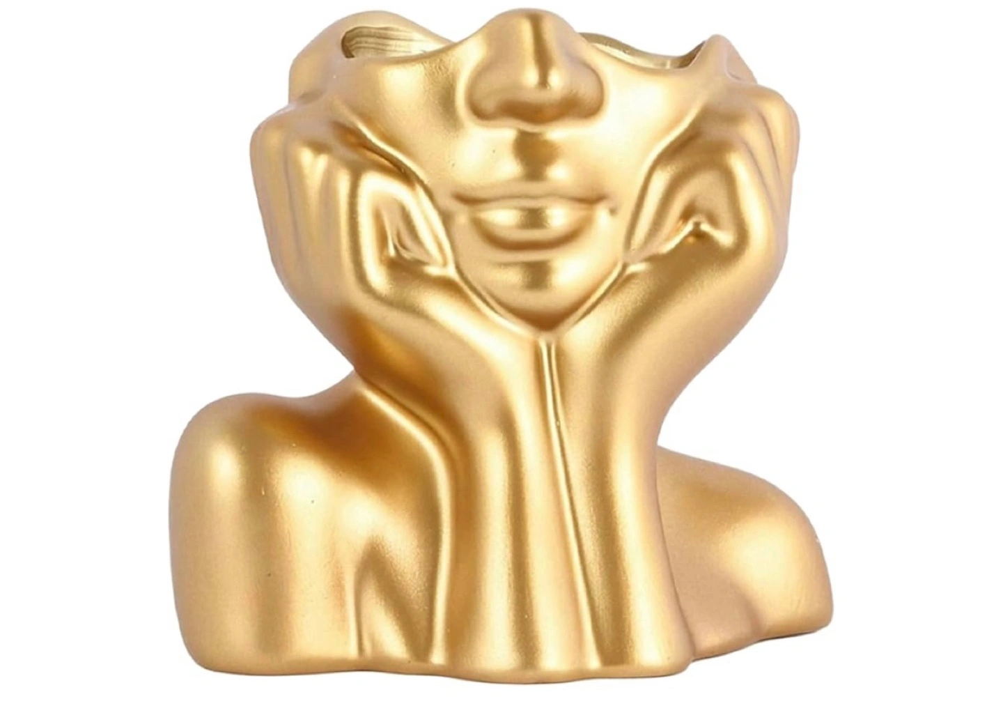 Selling a gold face planter. It's a fun and unique way to display your favourite plants! The planter is in great condition and ready to add some character to your home.