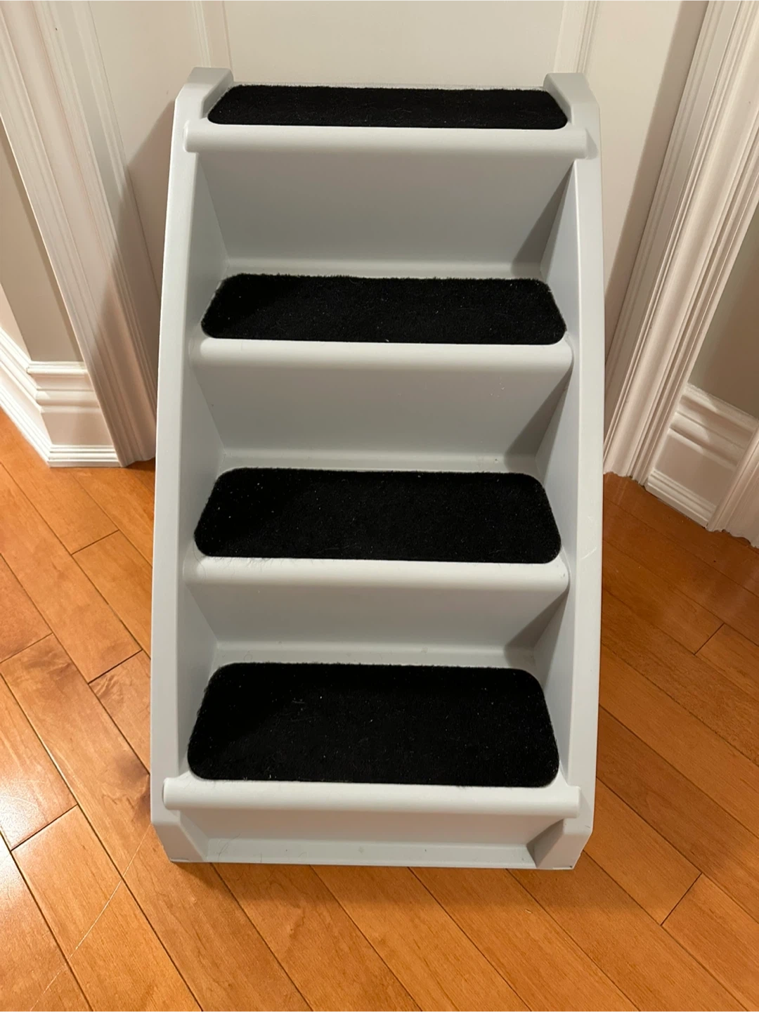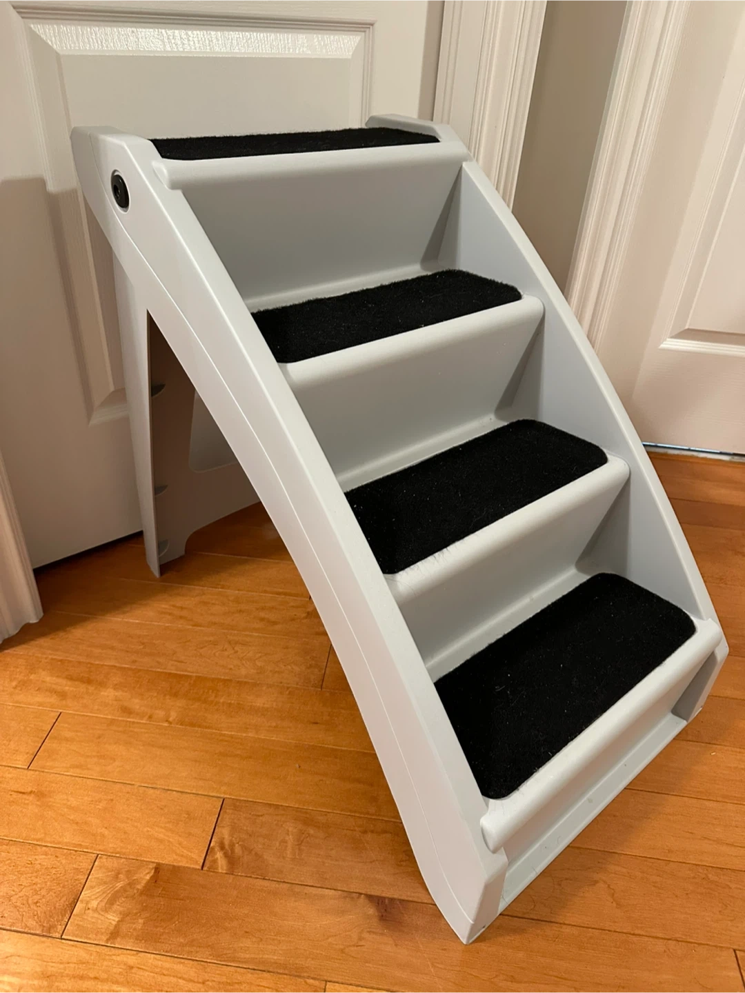 Selling a gently used PetSafe CozyUp Folding Pet Steps in grey. These steps are perfect for helping your furry friend reach their favourite spots! The steps are in great condition and ready for a new home. Dimensions: 25" H x 28" D x 18" W