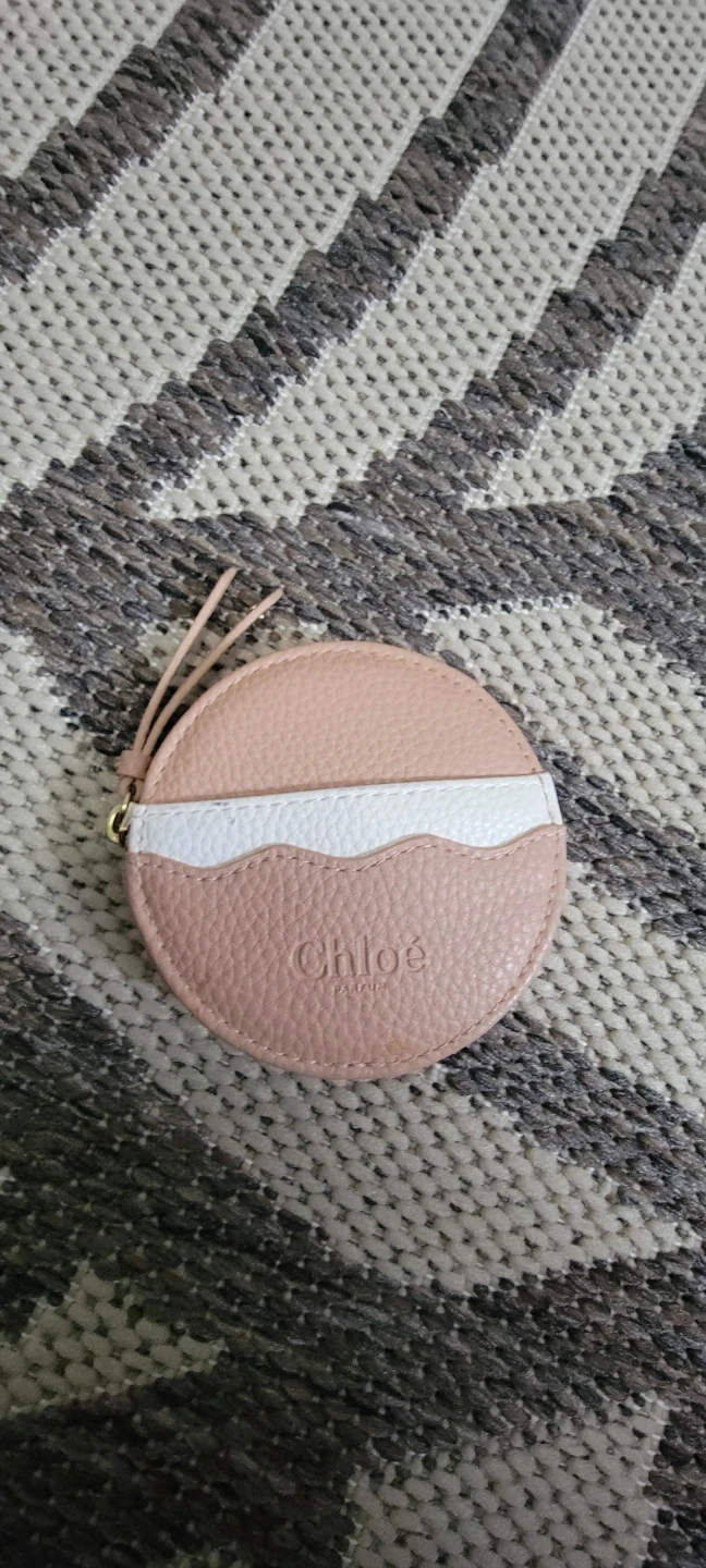 Selling a cute Chloé Parfums coin case! It's a lovely round shape with a pink and white design. Has small pocket at front. Perfect for keeping your coins and small essentials organized