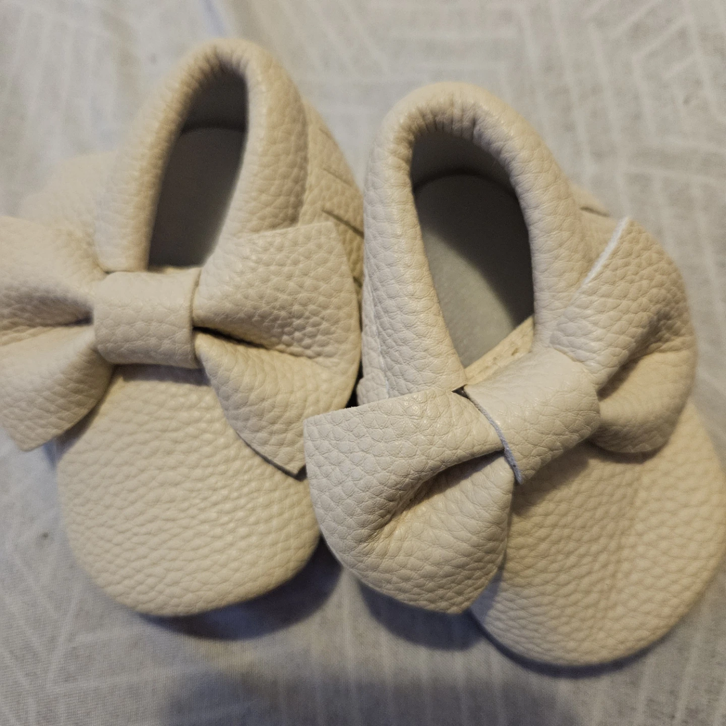 Adorable baby girl moccasins in a size 2! These are in great condition and feature a cute bow detail. Perfect for your little one's first steps or as a stylish accessory