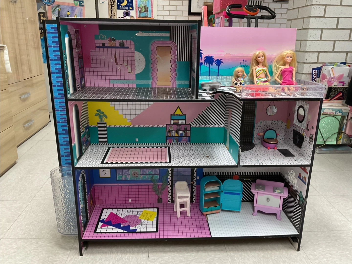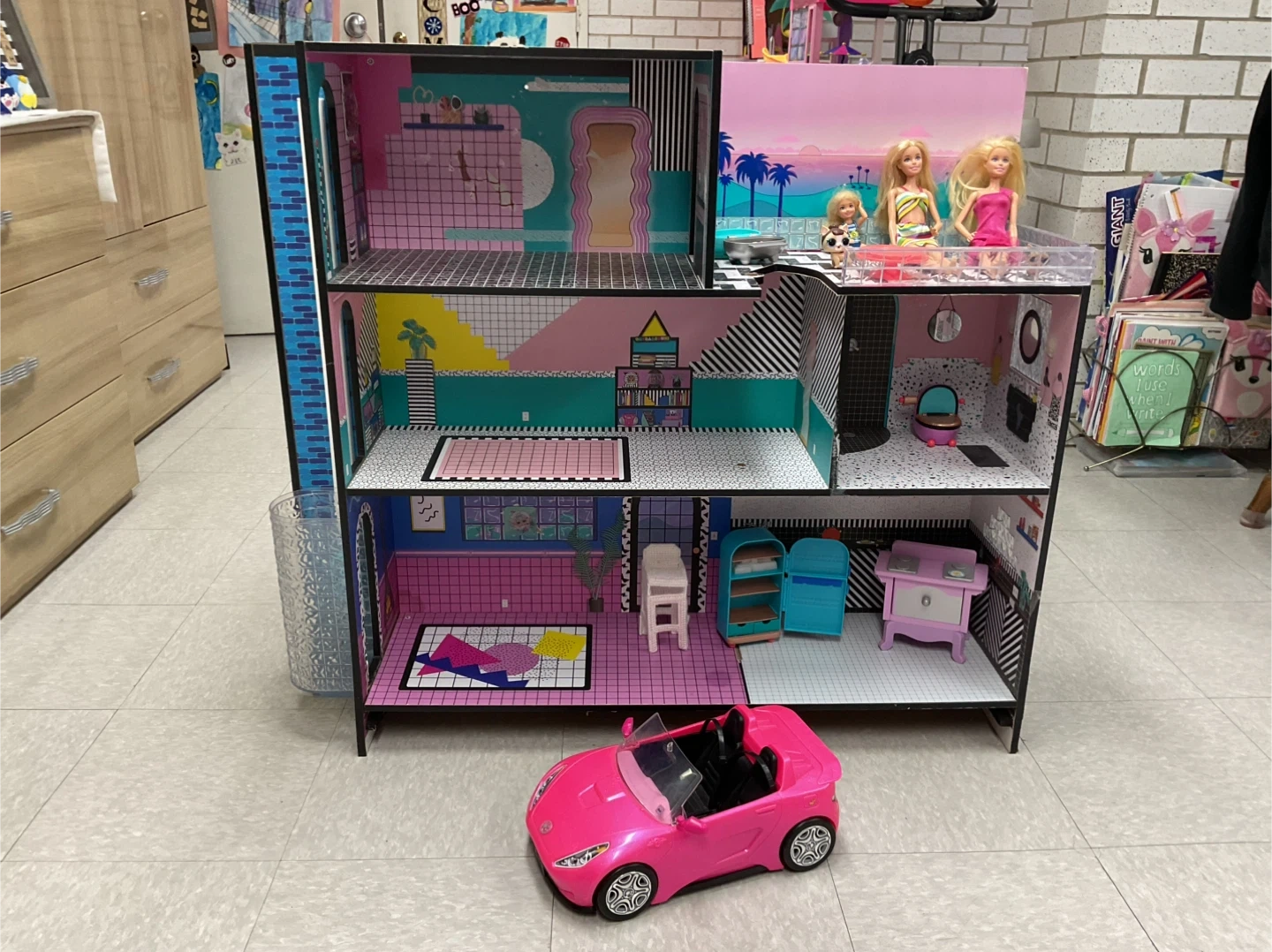 Selling a used LOL Surprise! OMG House of Surprises dollhouse. It's in good condition and ready for a new home for your LOL dolls! This dollhouse is packed with fun details and surprises on every floor. Includes all items shown in pictures.
