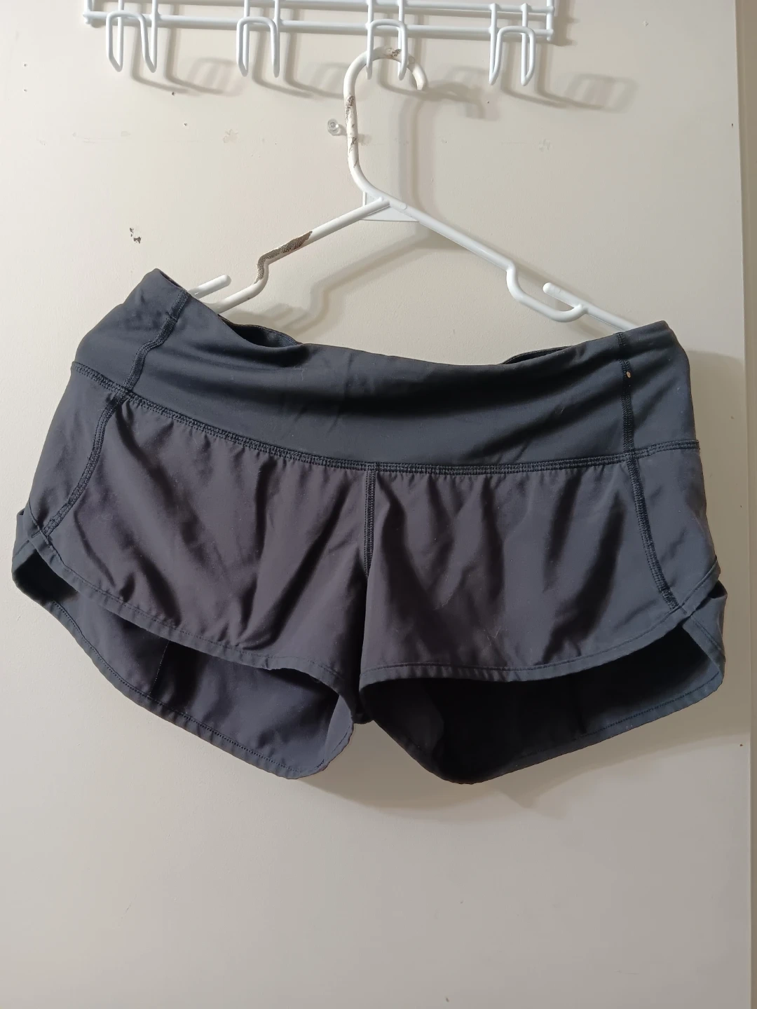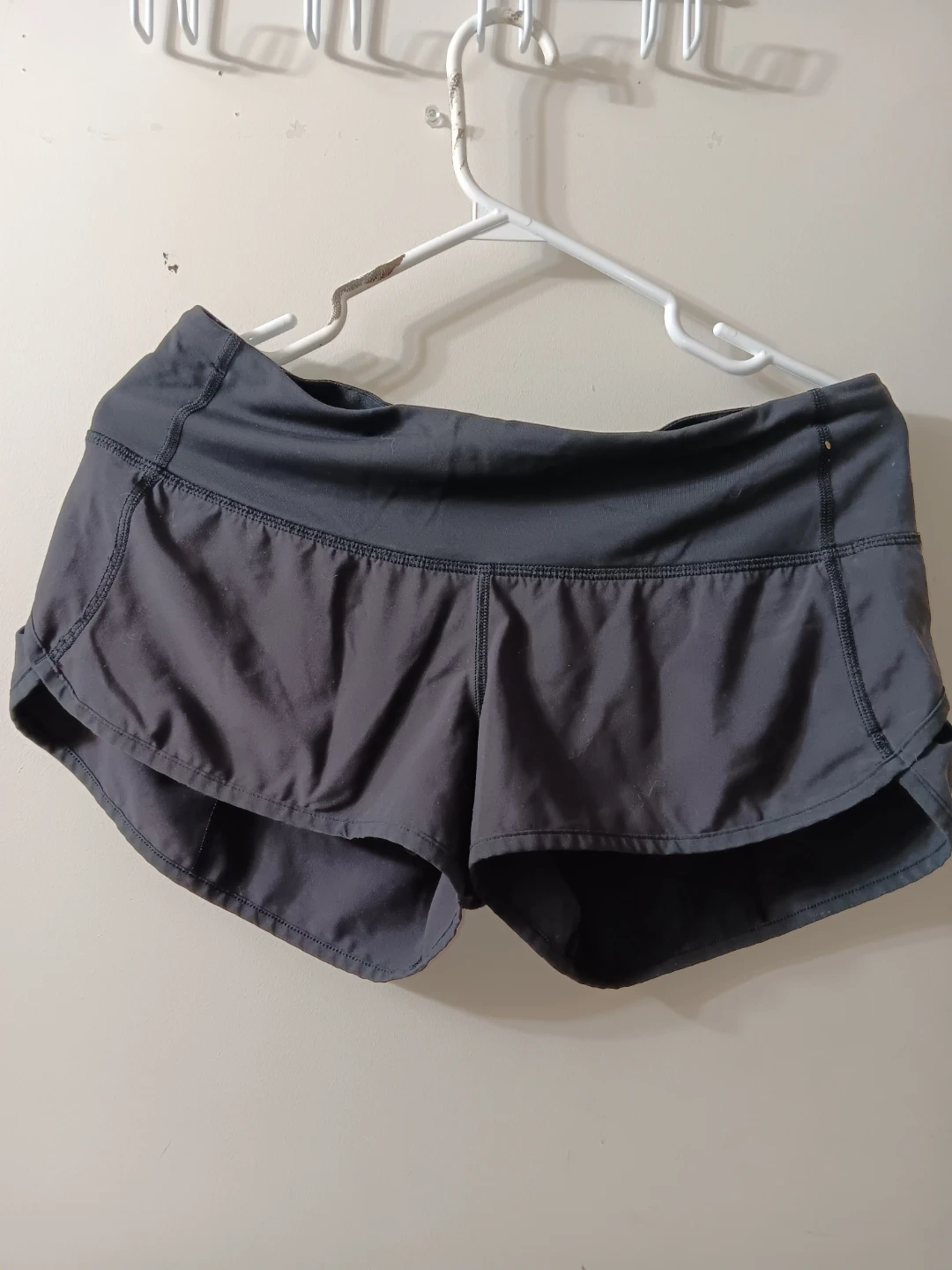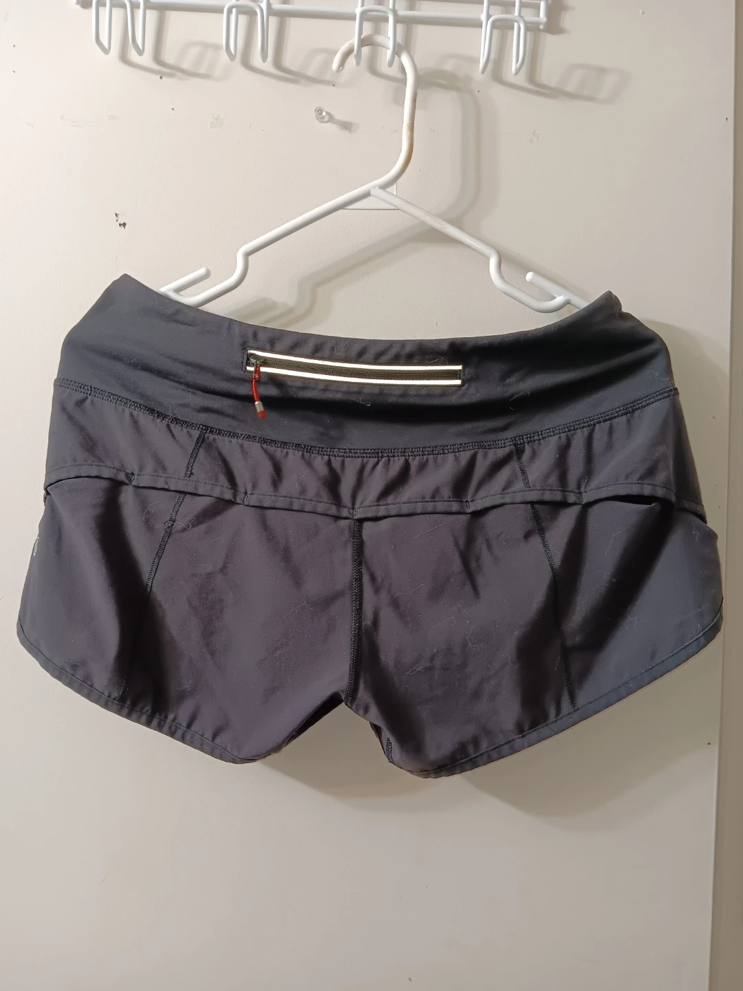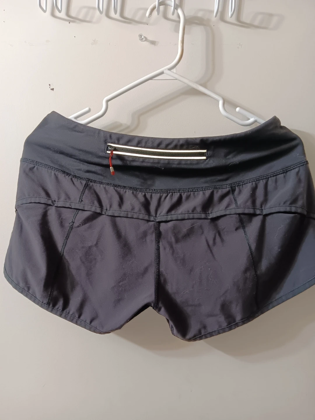 Selling a pair of Lululemon running shorts. They are in good condition and ready for your next workout! The shorts vintage Lululemon workout/running shorts in all black and feature a zipper pocket on the back. Size 6 (Im 90% sure) and fit a like a 6/8.