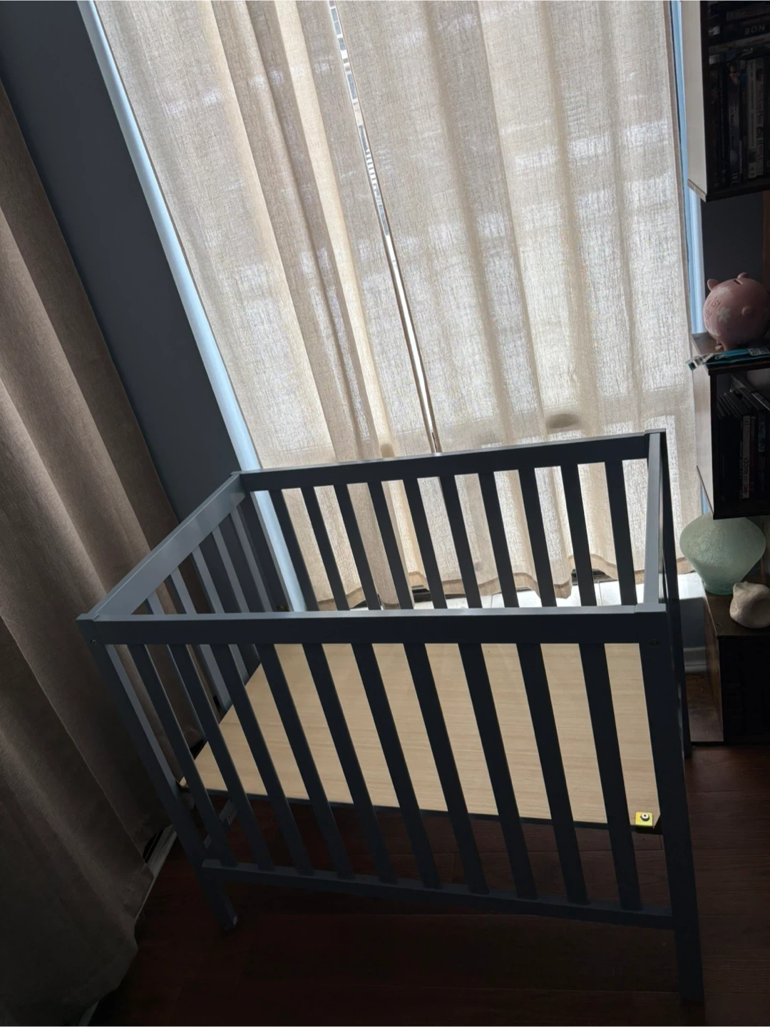 Selling a baby crib in a nice blue color. Perfect for your little one's nursery! Feel free to reach out if you're interested