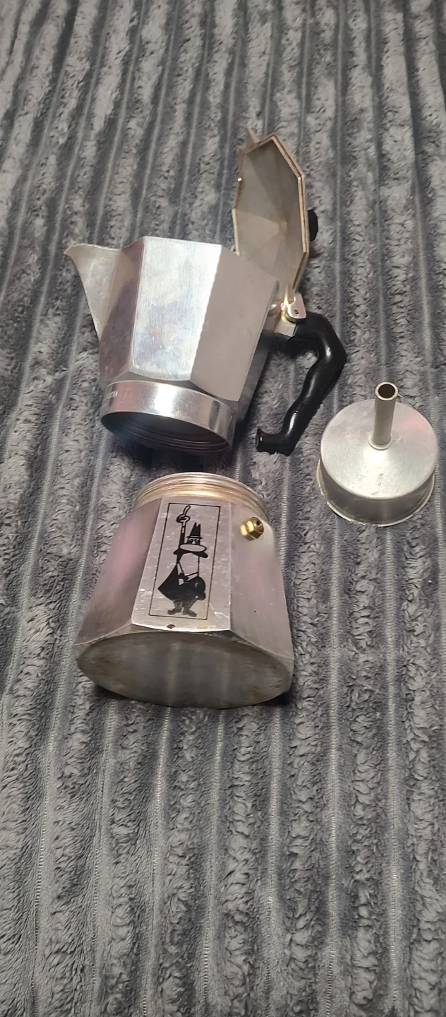 Selling a Bialetti Moka Express stovetop espresso maker! It's a classic way to make delicious coffee at home. It is in used condition, but still works great. Perfect for coffee lovers!