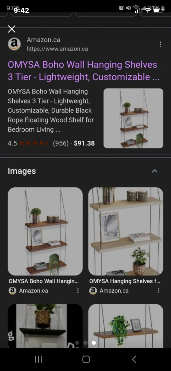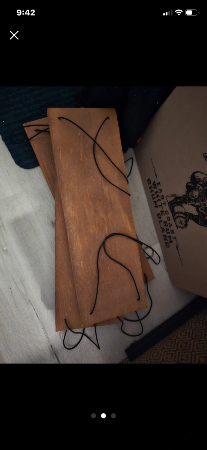 Selling a set of OMYSA Boho wall hanging shelves. These shelves are a 3-tier design, lightweight, and customizable. They feature a durable black rope and a floating wood shelf, perfect for a bedroom or living room🧡
