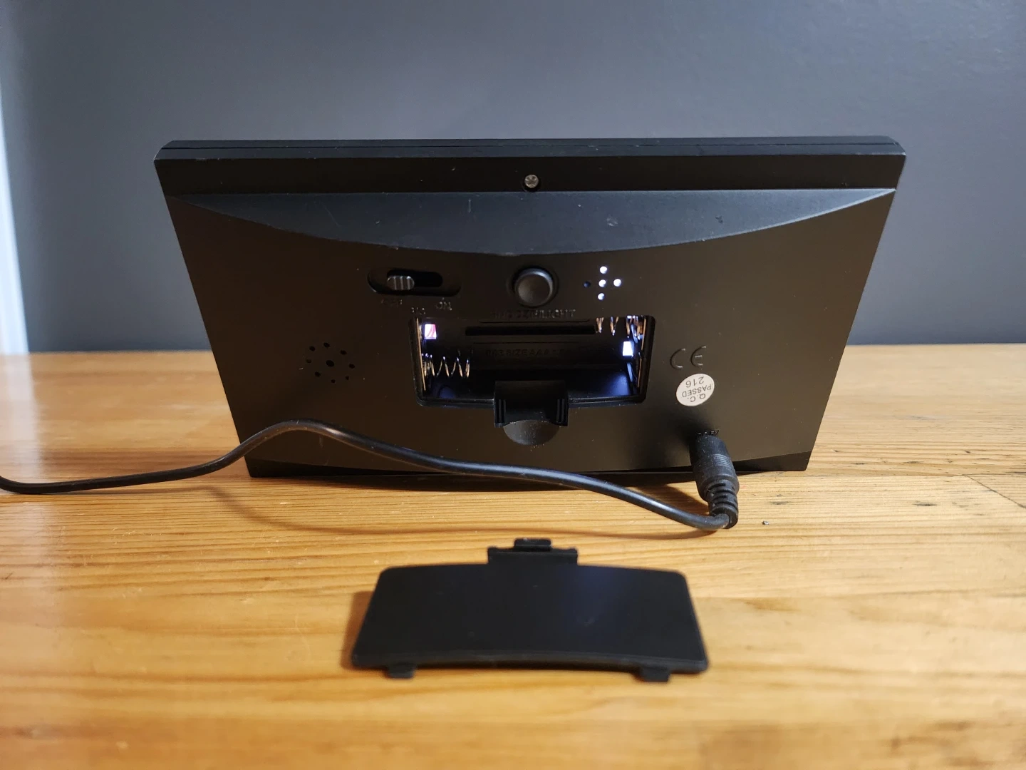 Digital LCD weather station clock. It displays the temperature, humidity, and time. Comes with a USB cable for power. Perfect for your desk or bedside table.